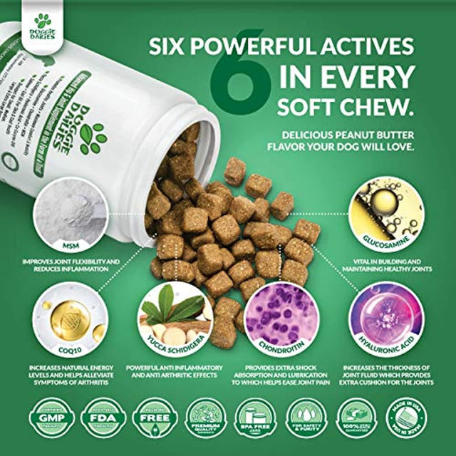 Doggie Dailies Glucosamine for Dogs, 225 Soft Chews, Advanced Hip and Joint Supplement for Dogs with Glucosamine, Chondroitin, MSM, Hyaluronic Acid and Coq10, Premium Dog Glucosamine (Peanut Butter)