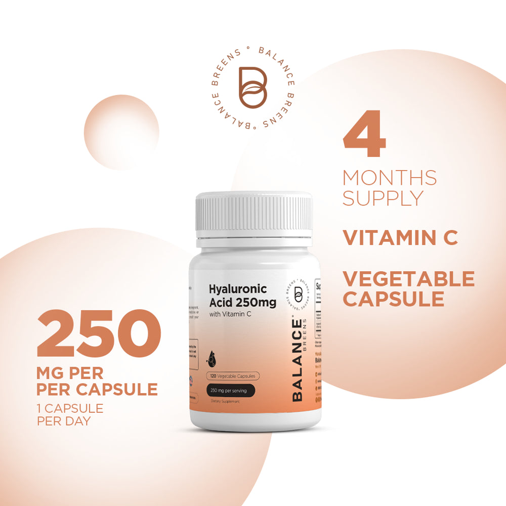 Hyaluronic Acid Skin Supplement 250Mg per Capsule, 120 Capsules, 4 Months Supply - Promotes Skin Hydration, anti Aging, Joint Support Supplement, Bones and Connective Tissue | Non-Gmo and Gluten Free