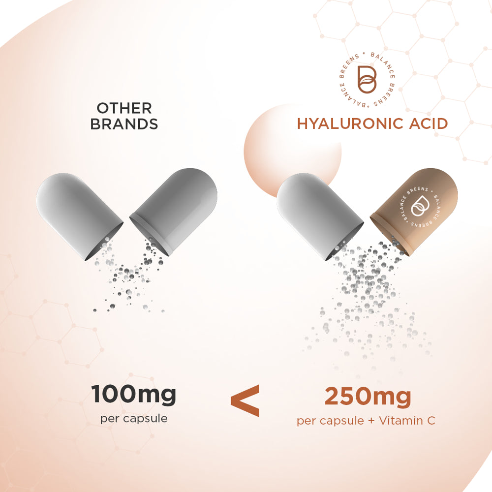 Say goodbye to messy greasy serums and creams. Get your hands on Hyaluronic Acid Supplements for the supple & glass-like glow skin your skin deserves!