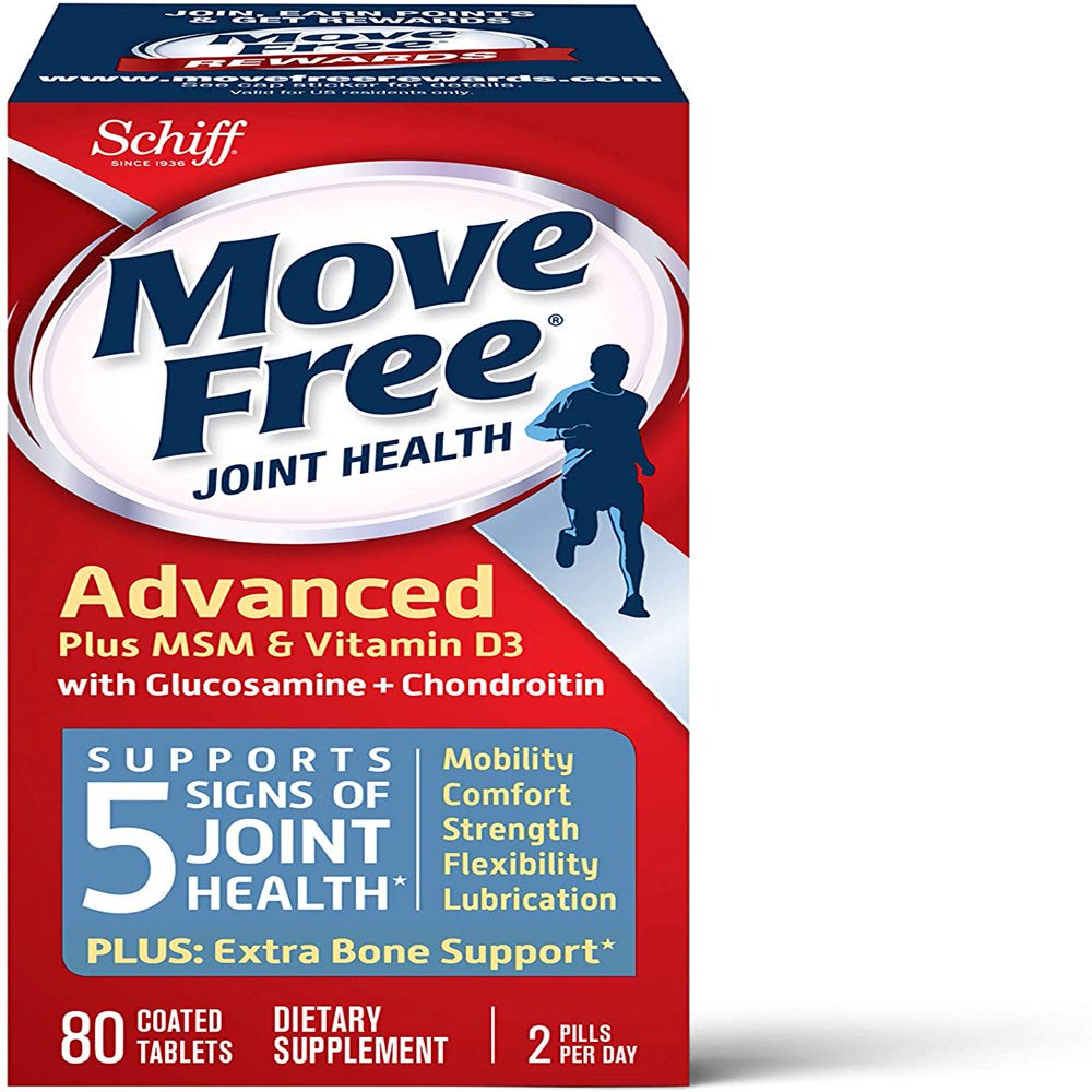 Move Free Advanced Glucosamine Chondroitin MSM Vitamin D3 and Hyaluronic Acid Joint Supplement 80 Count Pack of 4 is backordered and will ship as soon as it is back in stock.