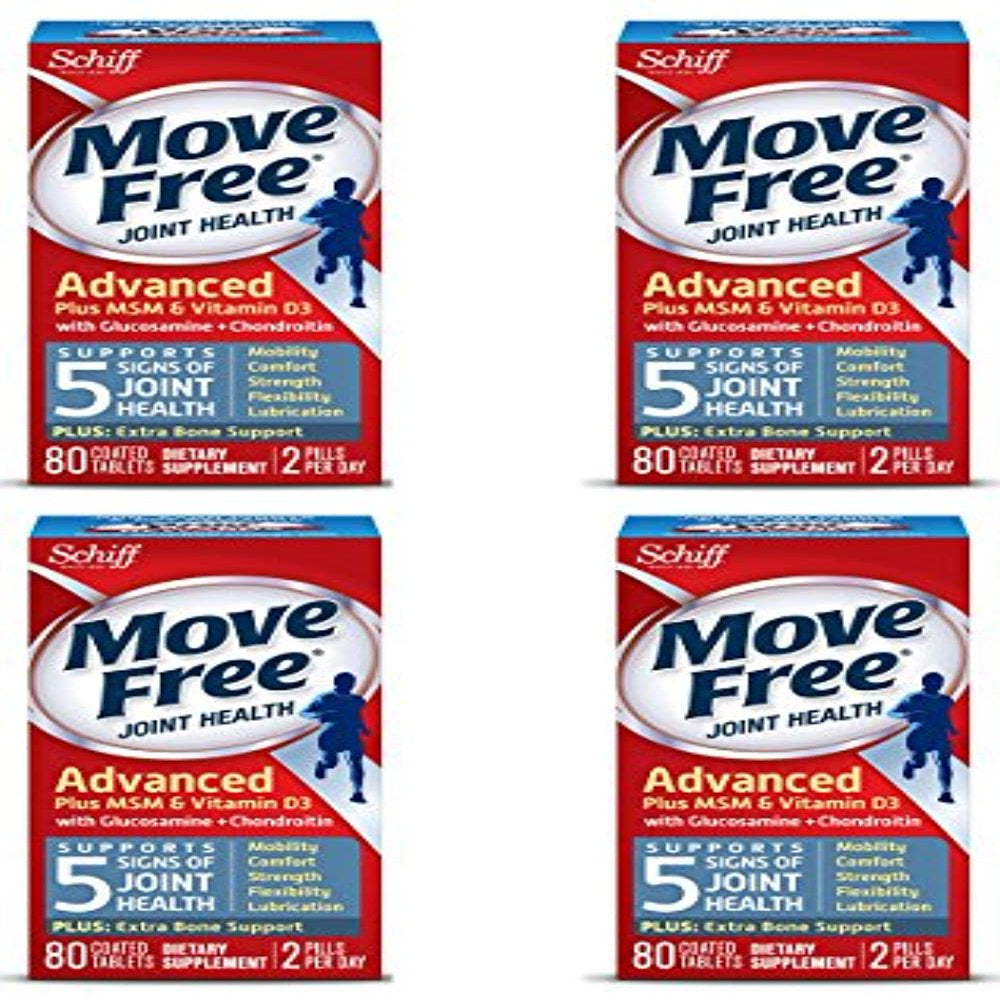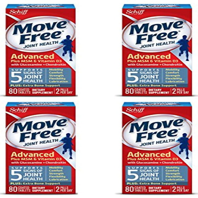Move Free Advanced Glucosamine Chondroitin MSM Vitamin D3 and Hyaluronic Acid Joint Supplement 80 Count Pack of 4