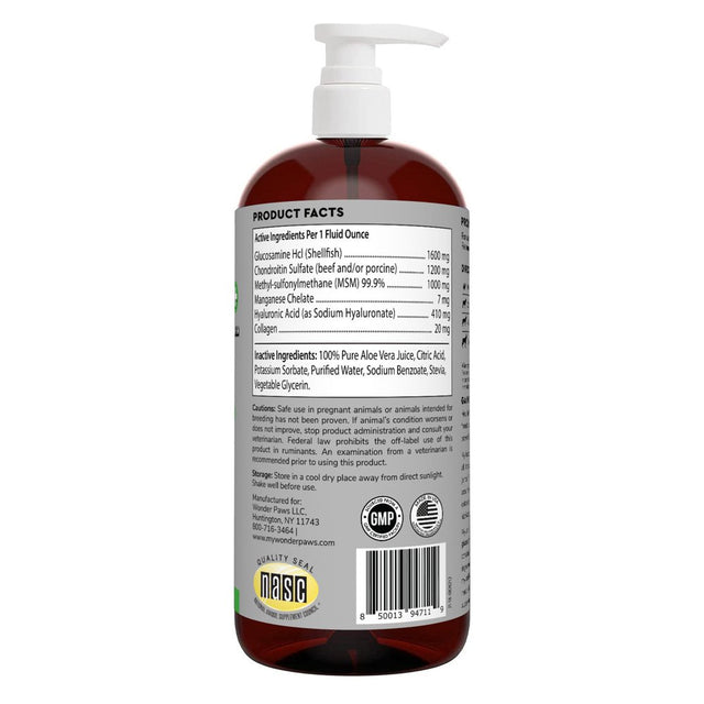 - SATISFACTION GUARANTEED: Wonder Paws offers a no questions asked 365 Day Money Back Guarantee because we are confident your pet will love our liquid joint aid for dogs supplement. Our hip and joint supplement for dogs is manufactured in the USA with the highest quality globally sourced ingredients. Let your pet experience the Wonder Paws difference.