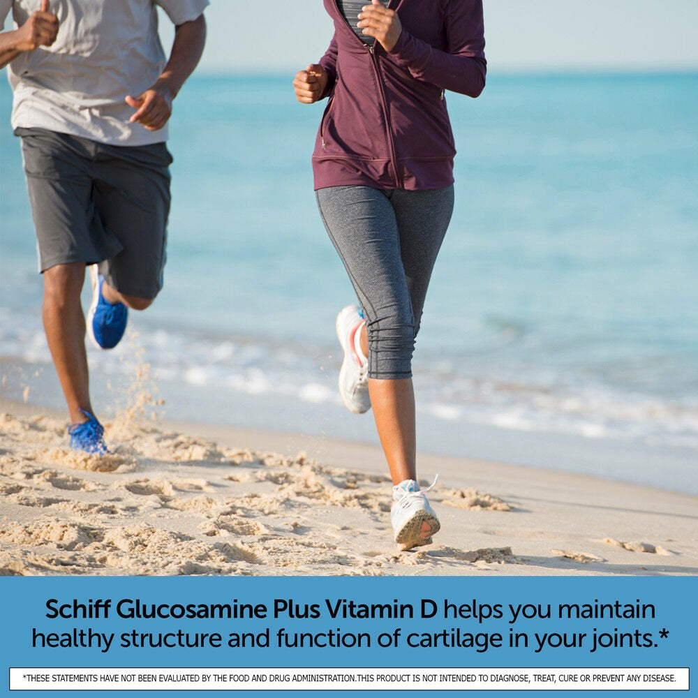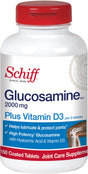 Schiff Glucosamine Plus Vitamin D3 joint supplements combine the highest potency glucosamine with hyaluronic acid (HA) and Vitamin D3 to support overall bone health and joint mobility so that you can move with ease. With Schiff Glucosamine, you can: Maintain healthy structure and function of cartilage in your joints.* Support movement and flexibility.* Build joint fluid and cartilage* with just two tablets per day, as directed, to reach the recommended serving of 2000 mg.