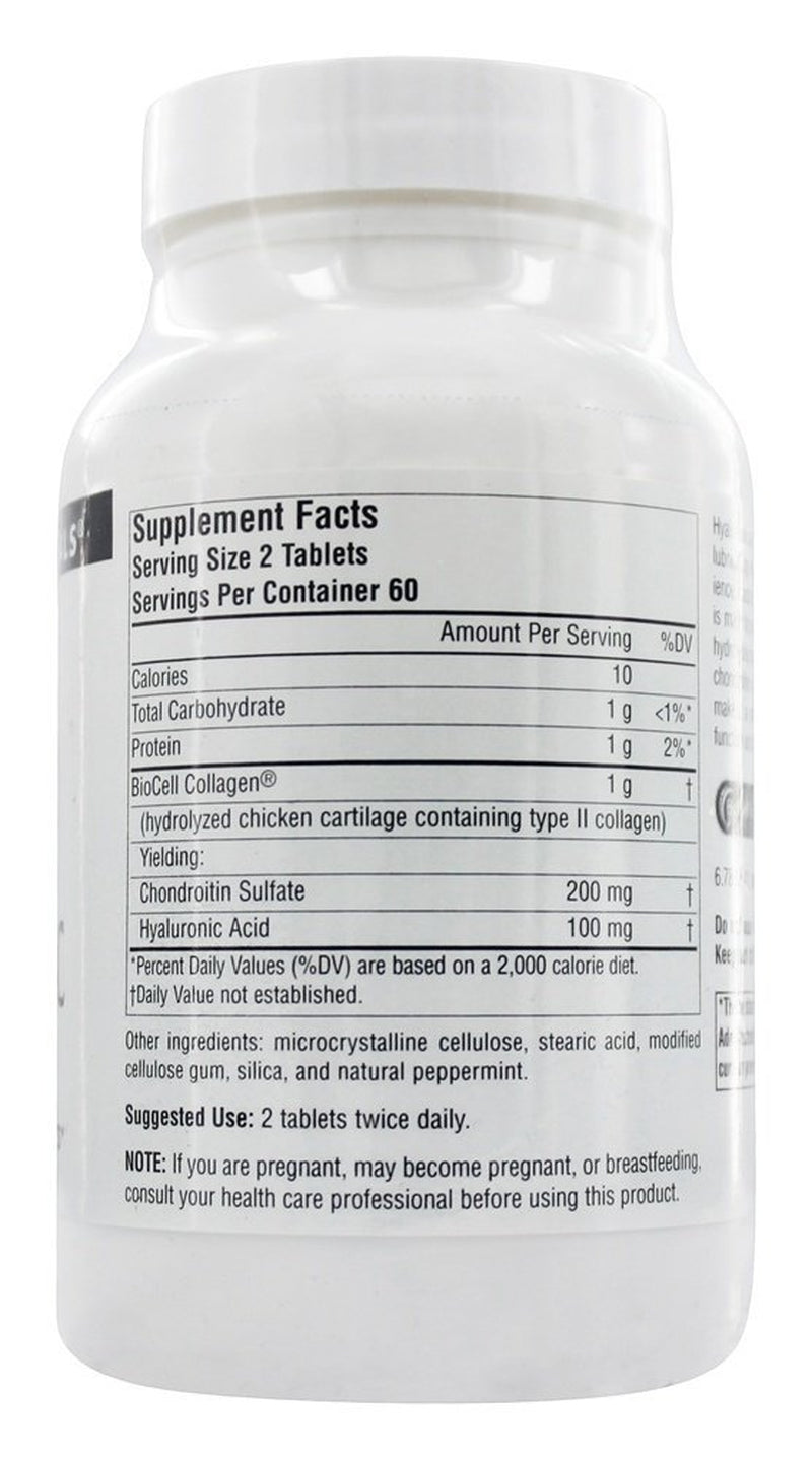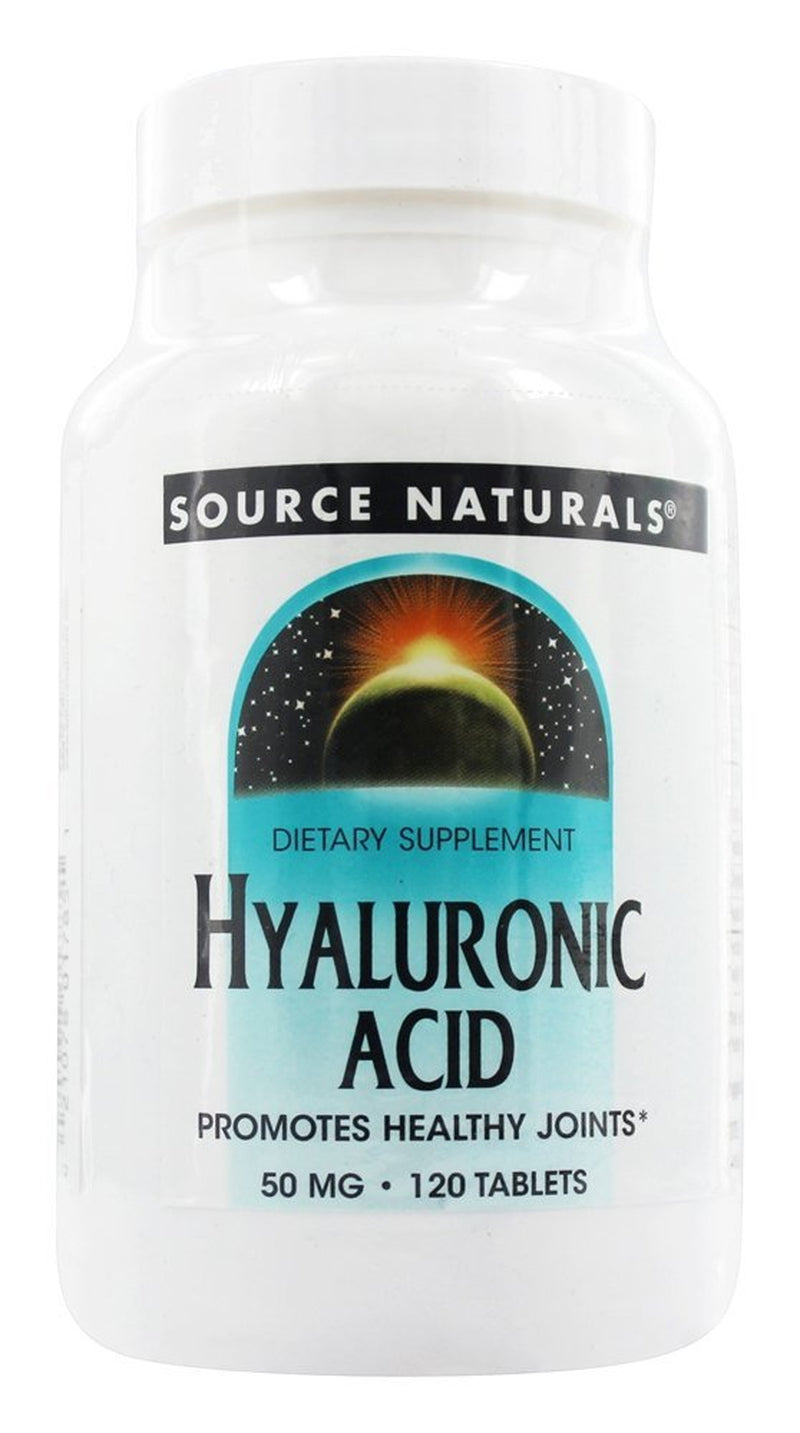 Source Naturals - Hyaluronic Acid from Bio-Cell Collagen II 50 mg. - 120 Tablets Source Naturals - Hyaluronic Acid from Bio-Cell Collagen II promotes skin fitness. Hyaluronic acid is a major component of joint tissue. Hyaluronic Acid helps to hold lubricating moisture in joints and cartilage, which affects their resilience, elasticity, and strength. Source Naturals Hyaluronic Acid is made from patented BioCell Collagen II, which has undergone an absorption enhancing hydrolyzation