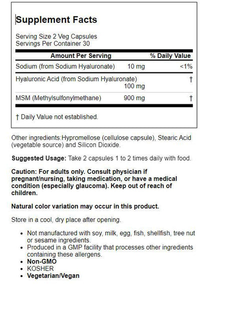 Now Foods, Hyaluronic Acid W/ MSM 50 Mg, 60 Veg Capsules