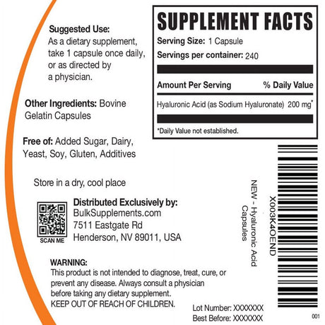 Horbaach Hyaluronic Acid 200 Mg 150 Capsules | Non-Gmo & Gluten Free Supplement