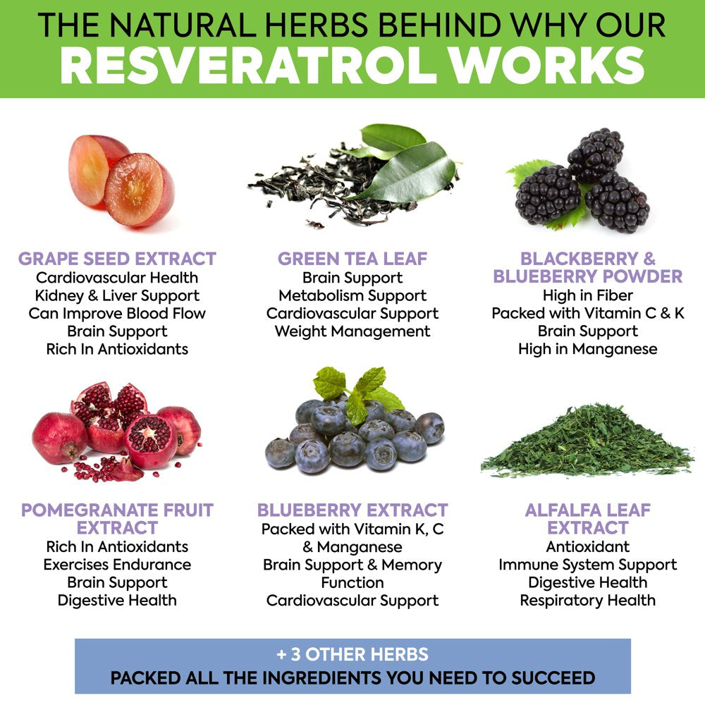 - TURBOCHARGE YOUR CARDIOVASCULAR HEALTH: The anti-oxidant properties found in Resveratrol support our blood vessels and increase cardiovascular function. It can also boost endurance, strength and stamina as well support weight loss and overall Better mood. It also supports maintain healthy blood sugar levels