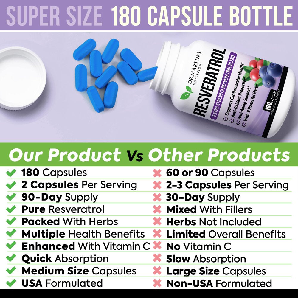 - LOOK & FEEL YOUNGER with our Anti-Aging, Anti-Oxidant Supplement: Our exclusive blended 1568mg Resveratrol formula comes with a 180 Capsules that helps fight these environmental toxins, called free radicals, to reduce signs of ageing to naturally maintain youthful vigour & appearance.