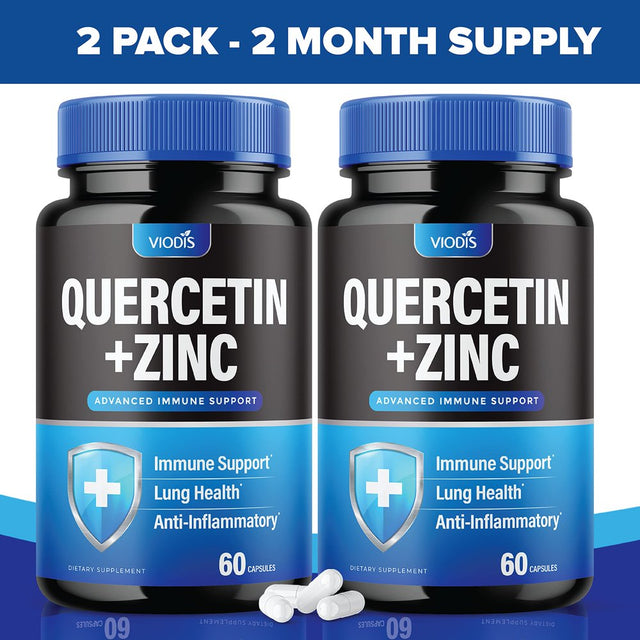 (2 Pack) Quercetin 500Mg with Zinc - Immune System Booster, Lung Support Supplement for Adults Kids - Immunity Defense (120 Capsules)