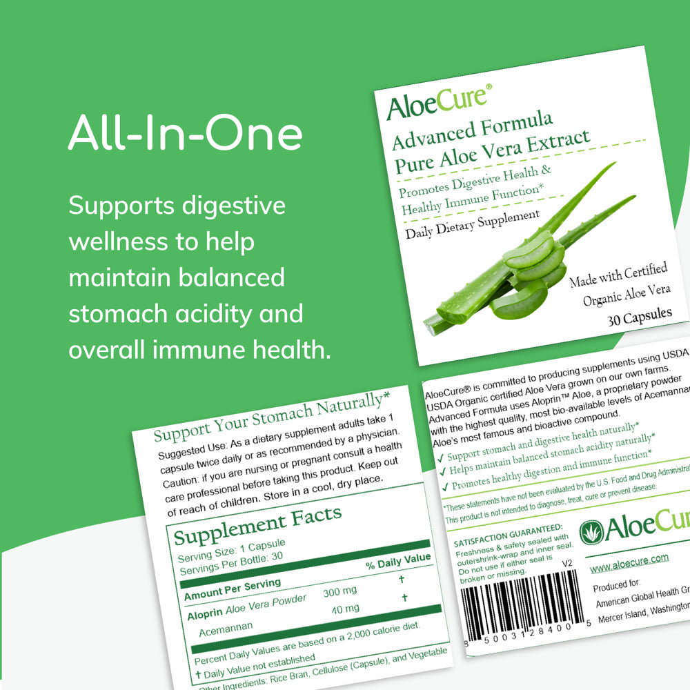 - DIGESTIVE RELIEF: Experience the power of pure aloe vera extract in convenient and easy-to-take capsules. Our organic aloe vera supplement is specifically formulated as an aloe vera stomach formula to support digestive wellness and provide natural support for balanced stomach acidity.