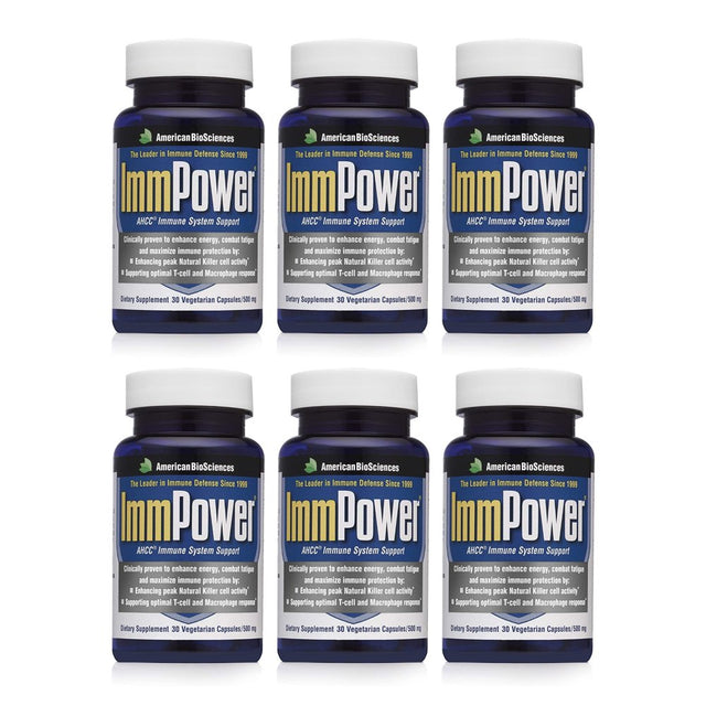American Biosciences Immpower, AHCC Mushroom Extract Immune System Support - Immune Support Supplement for Adults - Supports Cytokine Function - 30 Vegetarian Capsules, 500Mg/Capsule (6 Pack)