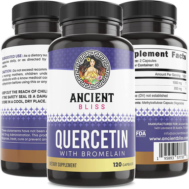 Ancient Bliss Quercetin Bromelain, Quercetin 1000Mg , Supports Immune System, Joint Health, Respiratory Health & Overall Well-Being – 120 Capsules
