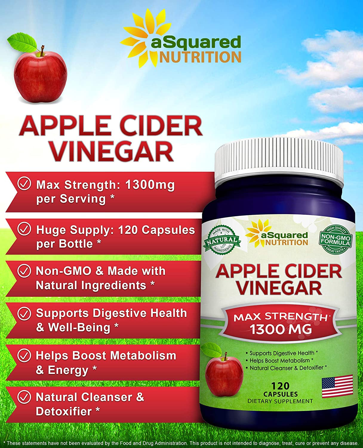 Asquared Nutrition Apple Cider Vinegar Supplement (120) - Extra Strength 1300Mg - ACV Pills for Pure Weight Loss, Detox, Digestion & Immune Support - All Natural Apple Cider Cleanse & Immunity Booster is backordered and will ship as soon as it is back in stock.