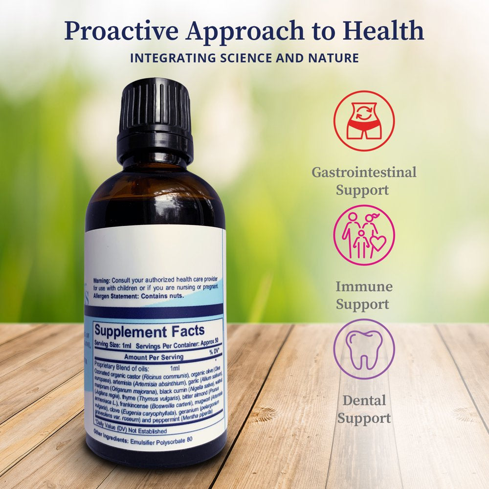 Biopure O3 Oils 10-In-1 - Nutraceutical Supplement That Combines Ozonated Organic & Natural Oils to Support Immune System, Dental Health, Gut Health, Balanced Microbiome, & Whole-Body Wellness - 50Ml