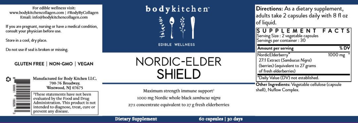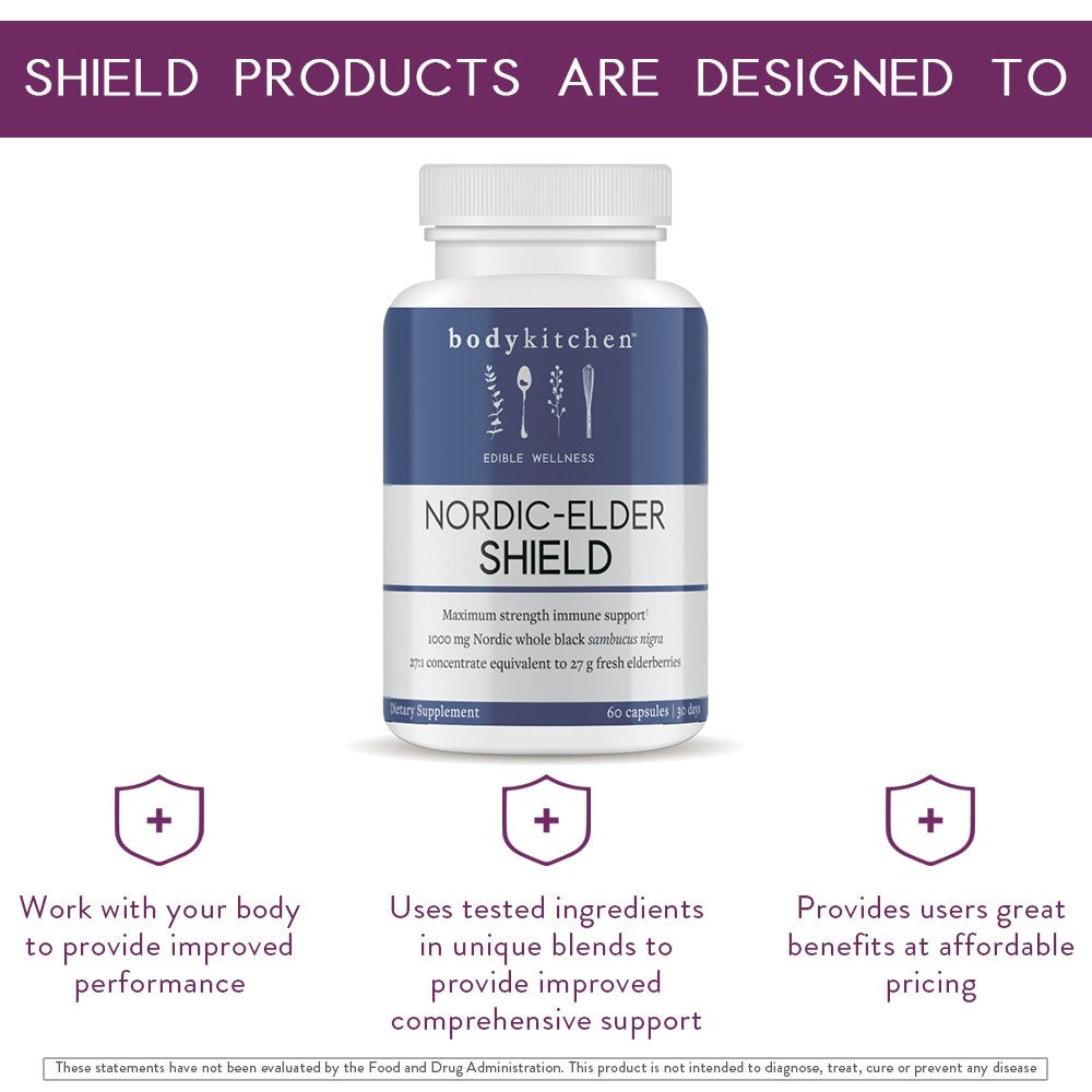 - Uses a clinically studied and patented Sambucus Nigra, Body Kitchen’s Nordic-Elder Shield is an optimal formula that helps support anti-viral and anti-bacterial effects