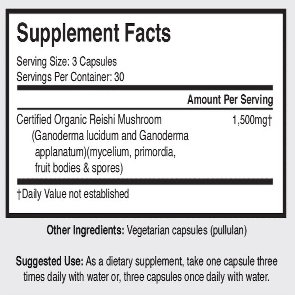 Brain Forza - Organic Reishi Mushroom 500 mg. - 90 Vegetarian Capsules Supplement Facts Serving Size: 3 Capsules Servings Per Container: 30 Amount Per Serving % Daily Value Certified Organic Reishi Mushroom 1,500 mg † (Ganoderma lucidum, applanatum and tsuage)(mycelium, promordia, fruit bodies & spores) † Daily Value not established. Other Ingredients: Vegetable capsules, organic sorghum./div>