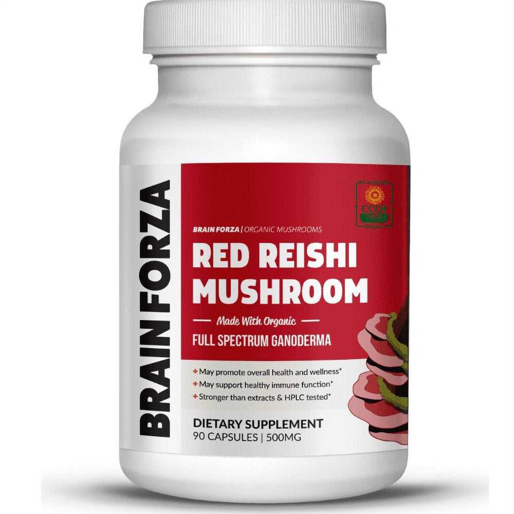 Brain Forza Organic Red Reishi Mushroom Capsules - Adaptogen for Mushroom Powdered Natural Immune Support, Heart and Cardiovascular System Health, Stamina, and Stress Management, 90 Capsules