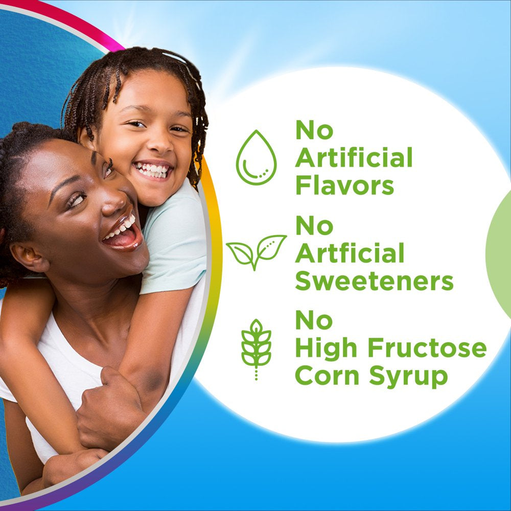 • Organic vitamins in delicious mixed berry, cherry and orange flavors with no artificial sweeteners, high fructose corn syrup and synthetic FD&C dyes