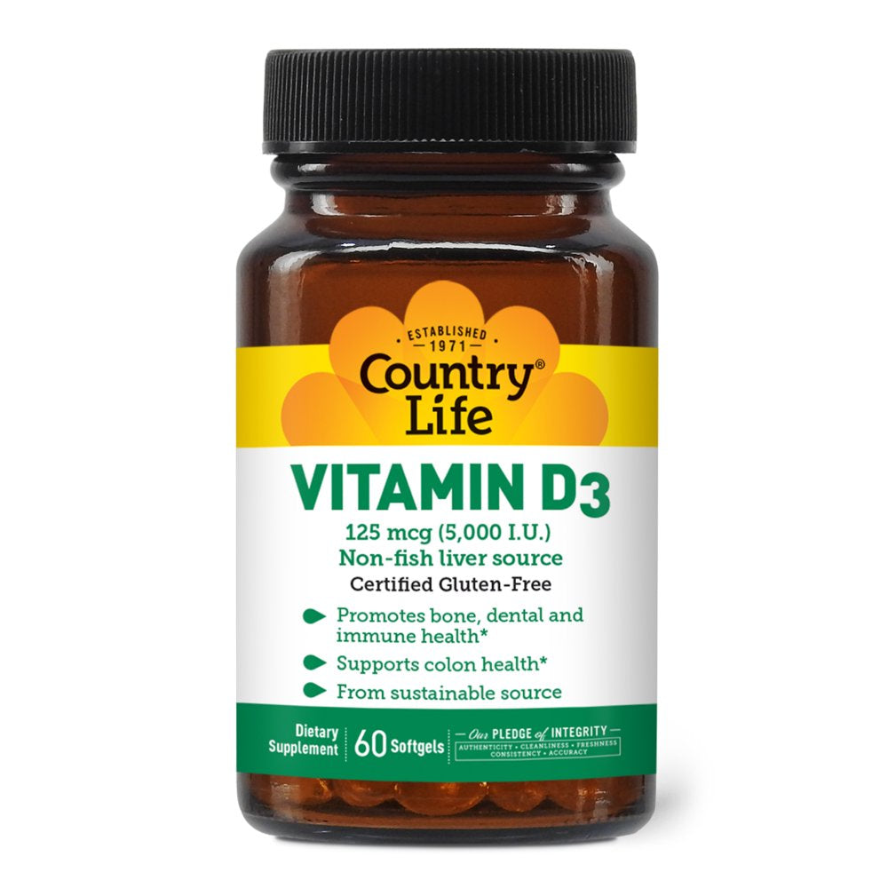 Country Life, Vitamin D3 5000 IU, Supports Healthy Bones, Teeth and Immune System, Daily Supplement, 60 Ct