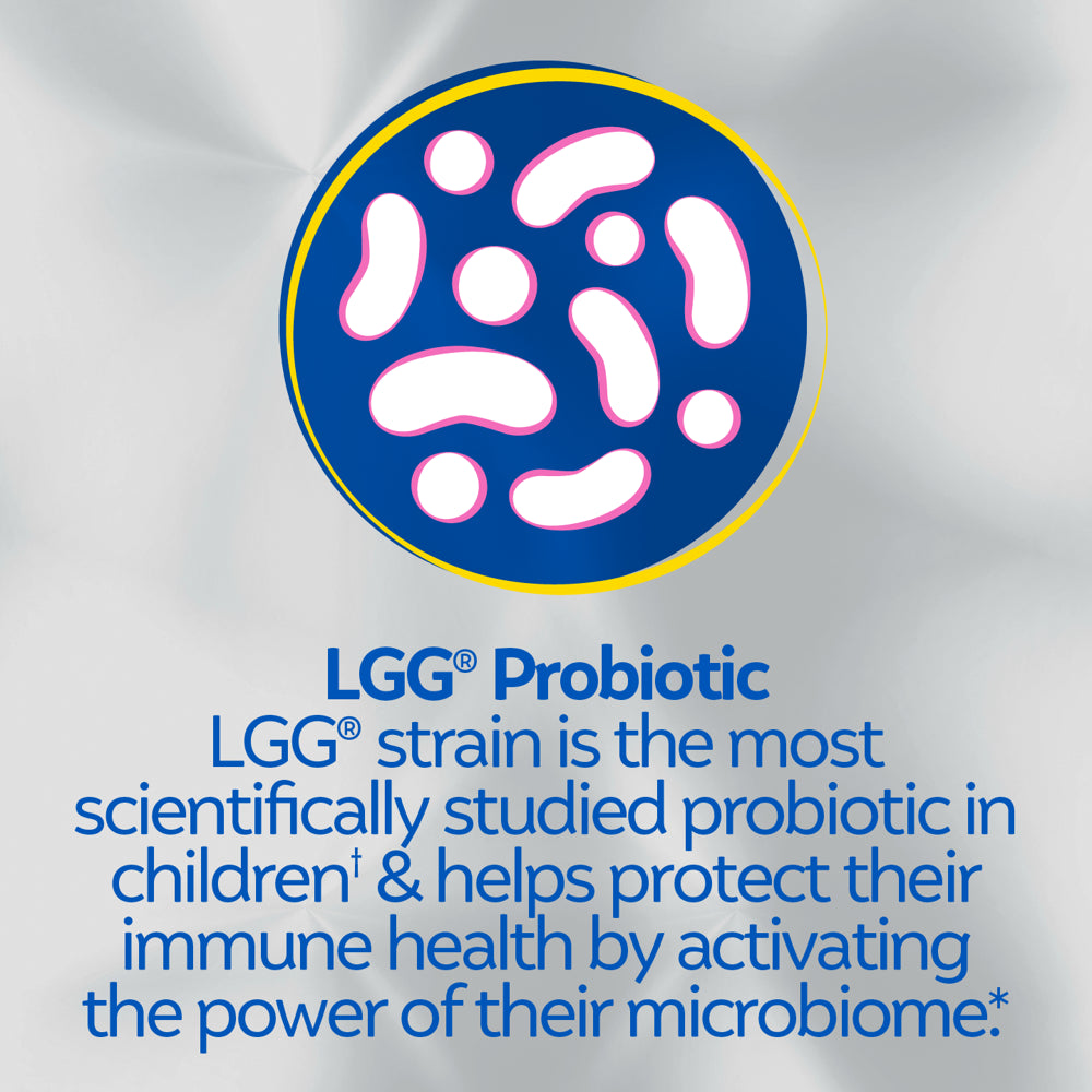 - †† Based on the studies of Lactobacillus rhamnosus GG for a range of benefits throughout the lifespan.