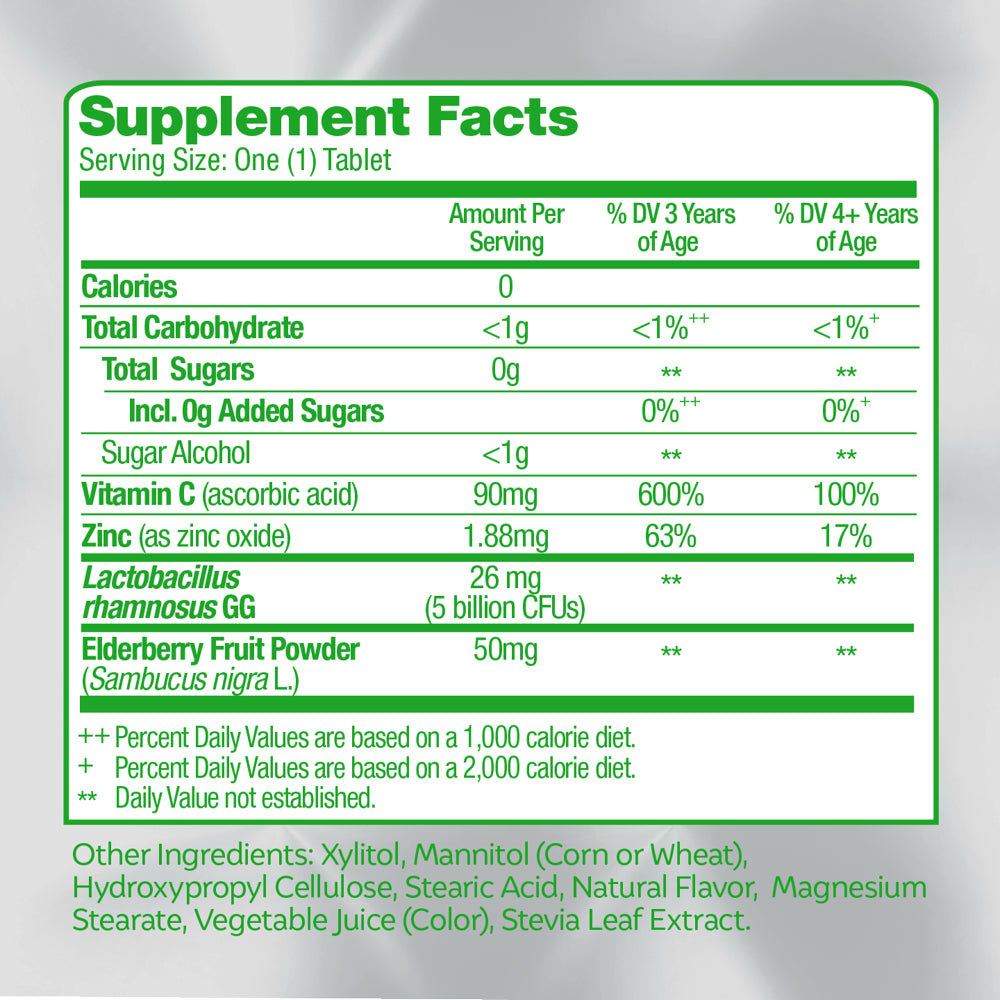 - MULTI BENEFIT FORMULA: Culturelle Kids Immune Defense Probiotics made with real elderberry fruit, Zinc, Vitamin C and Vitamin D; tasty and convenient chewables that help support your child’s immune system