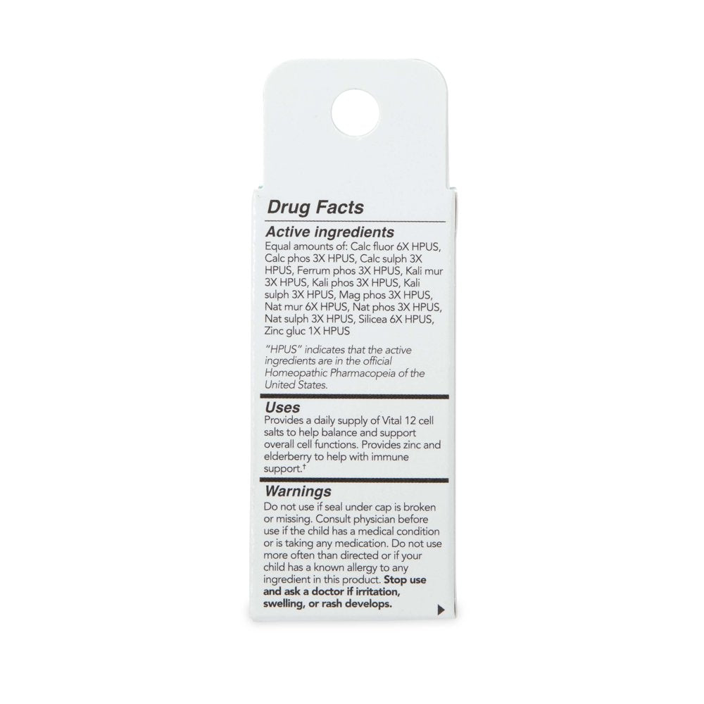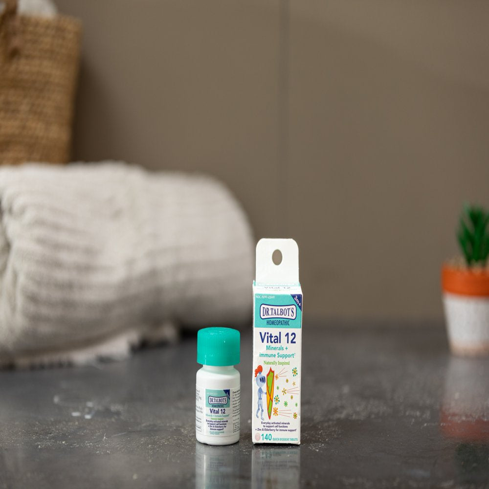 Dr. Talbot's Vital 12 Minerals and Immune Support† Tablets help power up the immune system to keep you and your little one feeling like superheroes. Dr. Talbot's Vital 12 tablets combine homeopathic ingredients, including zinc, elderberry, and cell salts to help balance and restore essential minerals in cells, allowing the body to stimulate self-healing. Dr. Talbot's Vital 12 mineral and immune support tablets are alcohol-free, dye-free, and paraben-free. Plus, these tablets are crafted with non-toxic and non-addictive ingredients, making them safe for even infants and pregnant women. A must-have for your and your child's wellness kit, Dr. Talbot's Homeopathic Vital 12 tablets are the safe and effective choice for boosting mineral and immune support for the whole family.