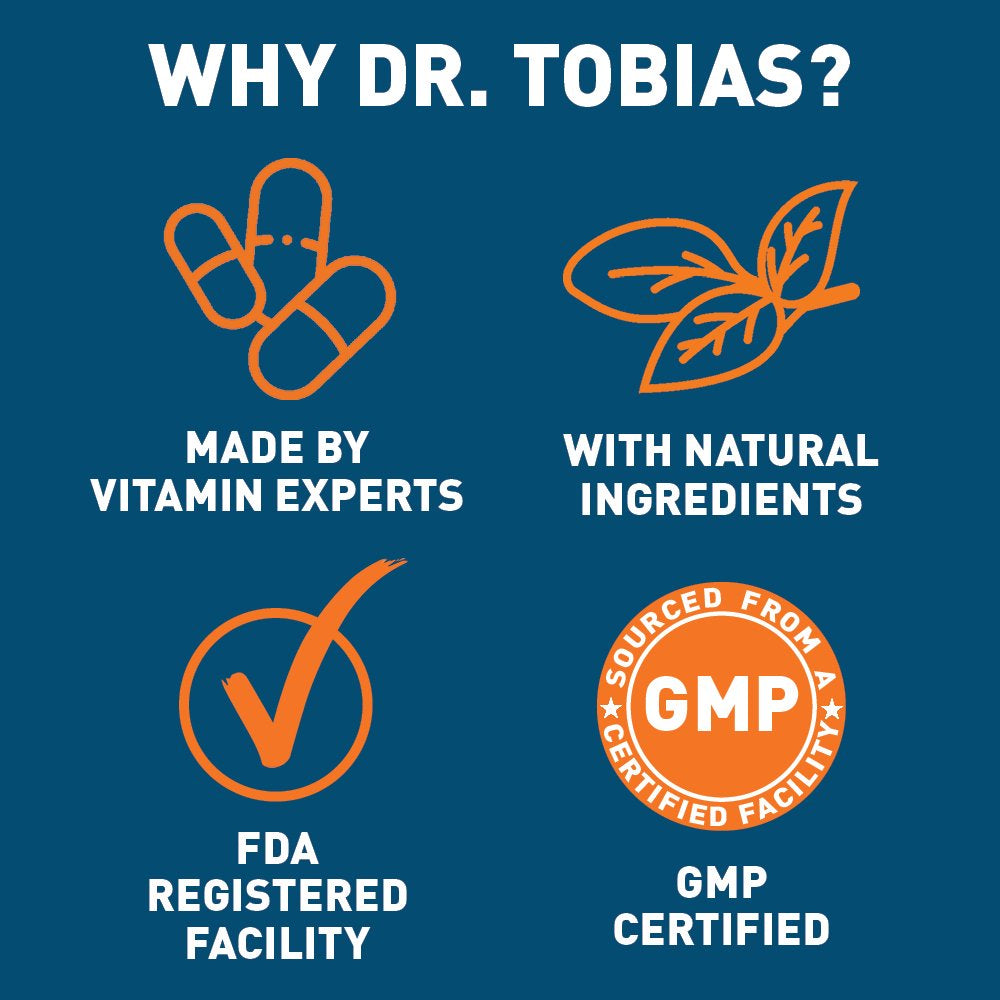 Dr. Tobias Prebiotics help support digestion and gut health, as well as boost gut immune function and feed good probiotic bacteria. Formulated with PreforPro, an advanced prebiotic technology, this digestion health supplement feeds healthy bacteria and targets the bad, helping enable better digestion and immune response. Designed for easy absorption and digestion, Dr. Tobias Prebiotics help deliver relief from common digestive issues and discomforts. Our prebiotic pills are effective on their own or enhanced when paired with probiotic capsules. Prebiotics and probiotics are not only essential for gut health – a healthy gut microbiome extends to all areas of health. Made with care, our cruelty free prebiotic digestive help supplement is vegan and 100% non-GMO. The health product is sourced from a GMP certified facility and made in the USA from international and domestic ingredients. Our prebiotic pills meet the highest safety and quality standards. Plus, they don’t require refrigeration. With Dr. Tobias nutrition supplements, prebiotics and probiotics for women and men, daily vitamins, and other health products, a better you starts here. Our mission is to encourage people to become the best version of themselves; whether you're looking for digestive nutritional supplements, pre and probiotics, joint support, an energy boost or a detox, we have a nutritional supplement or daily vitamin to help you get there.