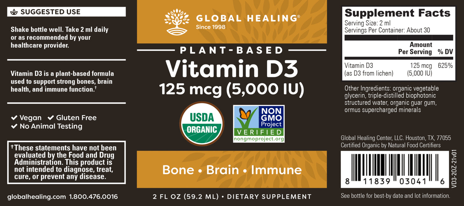 Global Healing Vitamin D3 5000 Iu Liquid Supplement for Immune Support, 2 Fl Oz