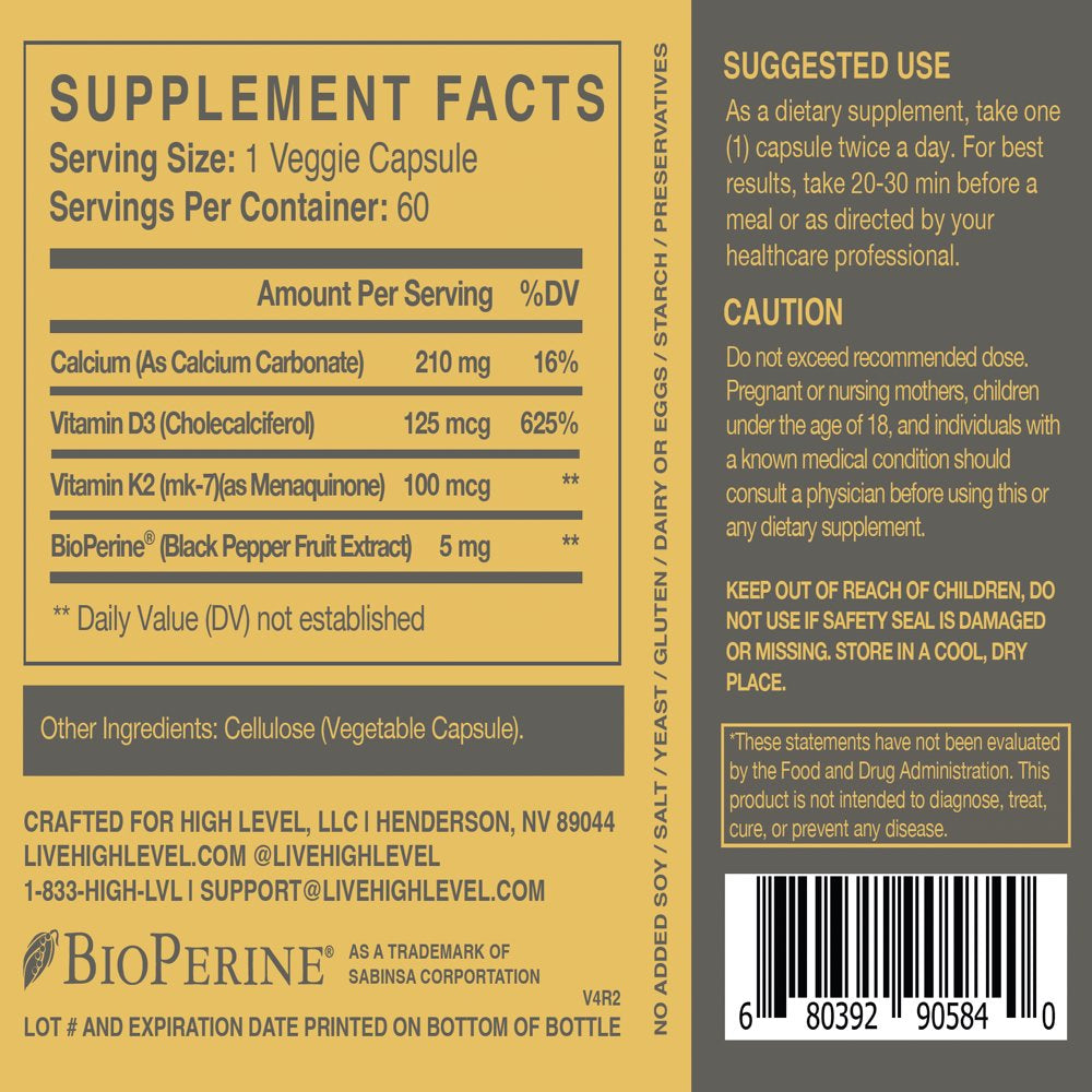 VEGGIE CAPS: Rock on with High Level's premium K2 + D3 blend in a natural, veggie-friendly capsule, ditching the fillers, artificial colors, and preservatives. It's a soy-free, salt-free, yeast-free, gluten-free, sugar-free, dairy-free, egg-free, and starch-free party in every capsule.