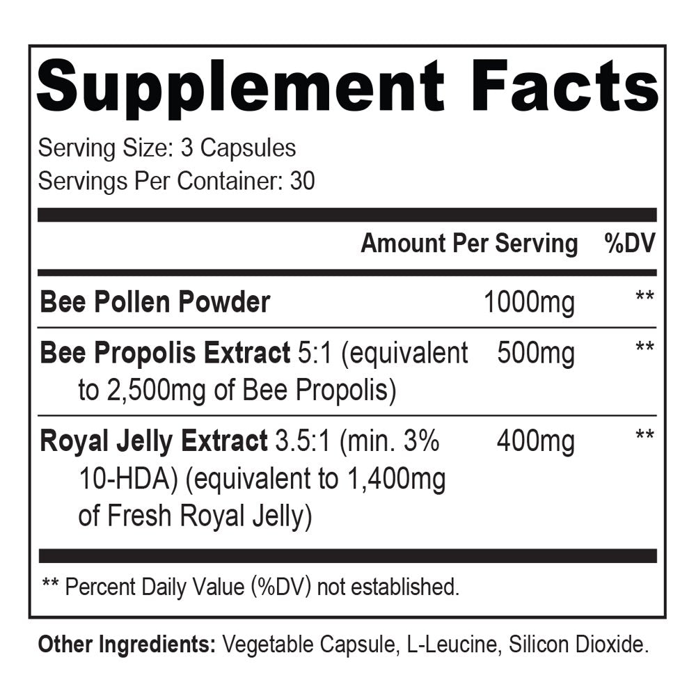 - Nature's most powerful super-food combination - premium grade royal jelly, bee pollen and bee propolis formula; 100% All-Natural
