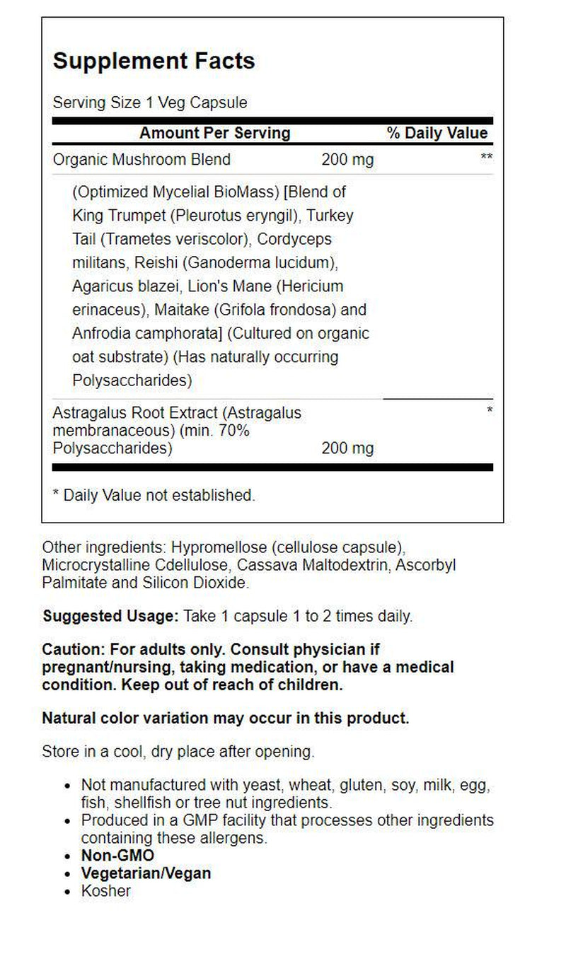Immune System Support Immune Recharging Mushroom Blend Plus Astragalus Root Extract Non-GMO A Dietary Supplement Vegetarian/Vegan Kosher General Health Family Owned Since 1968 GMP Quality Assured NOW® Immune Renew™ has been delivers the natural nutrient profile found in genuine whole foods. NOW® Immune Renew™ has been specifically formulated to support the immune system with standardized astragalus extract and a specialized mushroom blend. Our specialized blend of eight mushrooms has been optimized for the characteristic mushroom polysaccharides known as beta-glucans. Mushroom beta-glucans have been long respected and scientifically studied for their immune system supporting properties. Astragalus has been included to complement our mushroom blend due to its ability to support a healthy immune system response.