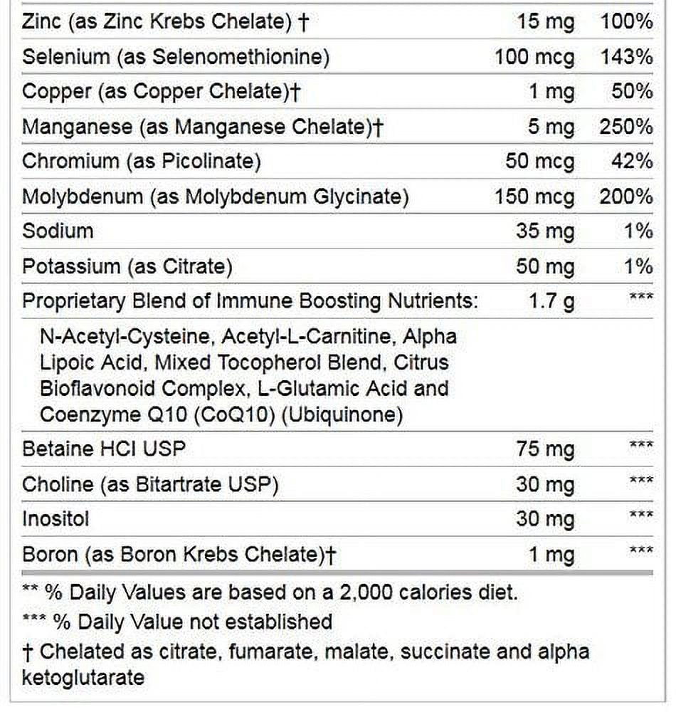 - optimal dosages of highly potent antioxidants including Alpha Lipoic Acid, Acetyl-L-Carnitine, and N-Acetyl-Cysteine