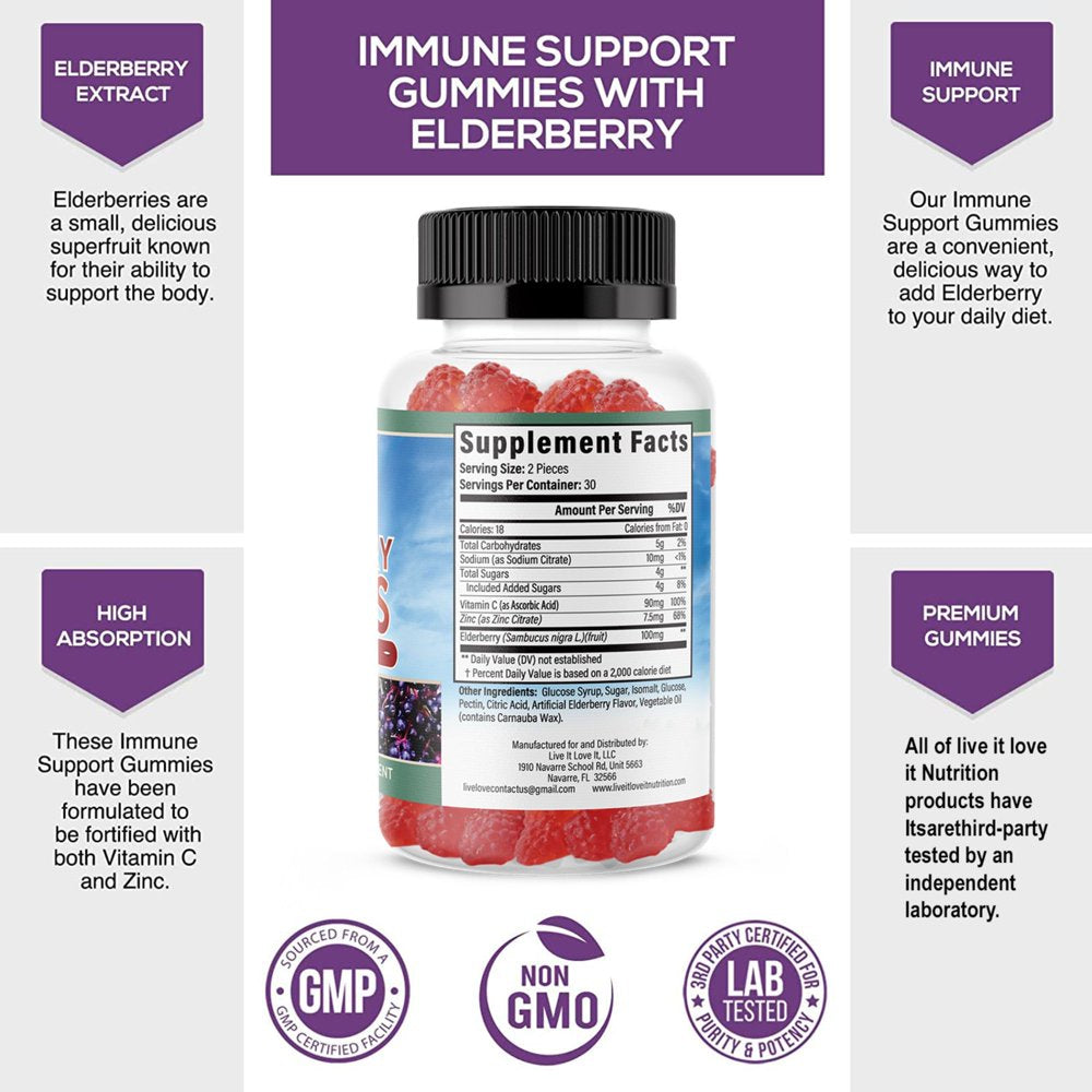 Live It Love It Elderberry Gummies, Elderberry Flavor 60 Gummy for Immune Support & Overall Wellness