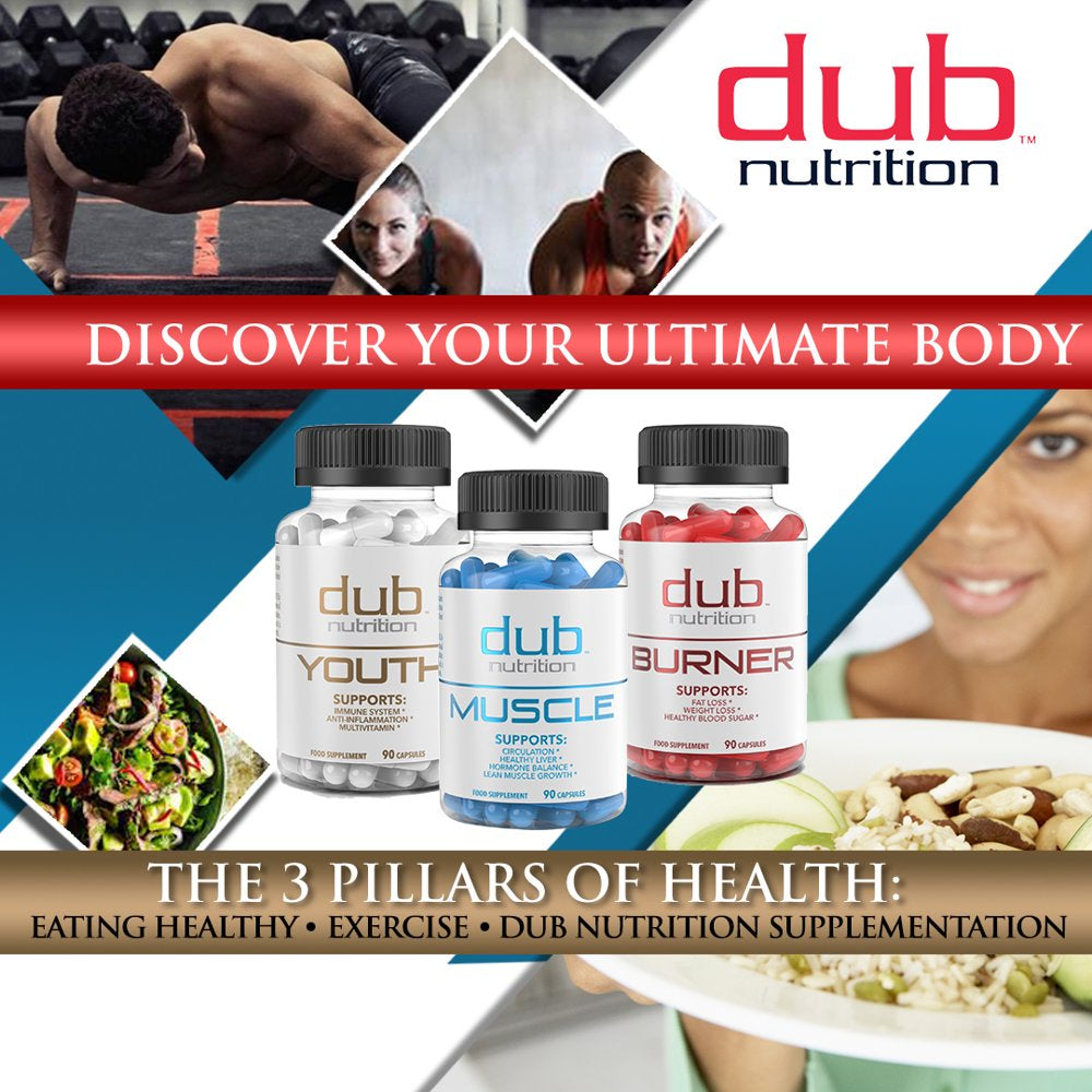 Burner, Muscle, Youth = the Perfect Combination The Burner, Muscle, Youth combo was designed for both men and women. dub Muscle is the most advanced lean muscle formula available on the market today. It is designed to protect your existing muscle tissue and to create an optimum environment for the addition of new muscle tissue. dub Burner- BURNS FAT WHILE PRESERVING MUSCLE: If you're looking for the best, you've found it! DUB BURNER is the world's first muscle-preserving fat burner A TRUE SUPER FORMULA. Its unique thermogenic formula helps burn fat while preserving muscle, and improves mental focus, mood, and energy. dub Youth is our signature anti-aging product that assists in slowing the aging process. This product was developed specifically to help you age gracefully, not aggressively. DUB YOUTH helps the body combat the effects of aging and helps to protect your organs, lean tissue, skin. Conveniently packaged, these supplements will help you onto the path of success with your fitness goals and needs. Order yours today and begin your journey!*These statements have not been evaluated by the Food and Drug Administration. This product is not intended to diagnose, treat, cure, or prevent any disease