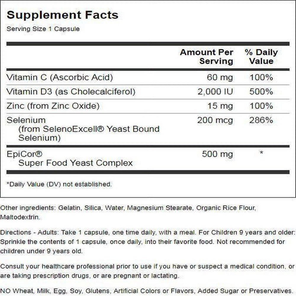 - Contains vitamins C and D, selenium, zinc as well as a natural super food complex