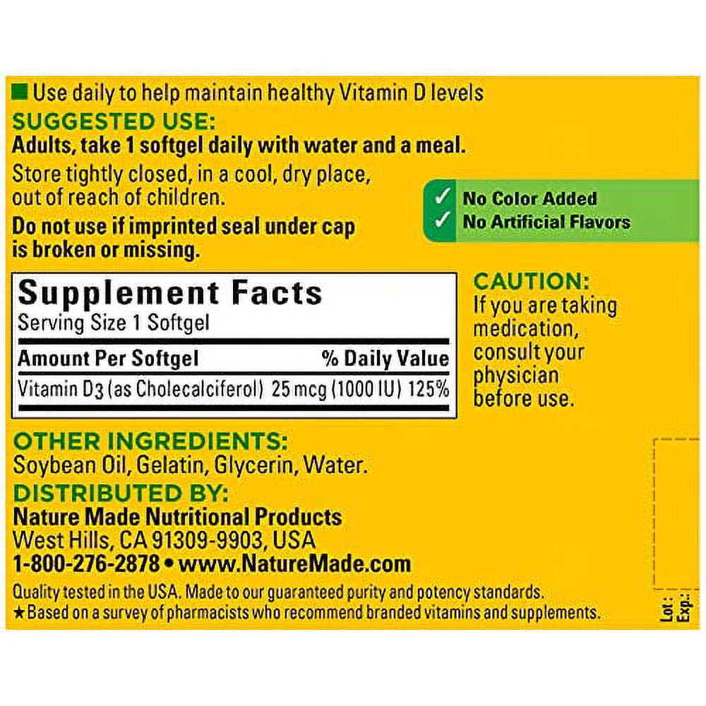 Nature Made Vitamin D3, 300 Softgels, Vitamin D 1000 IU (25 Mcg) Helps Support Immune Health, Strong Bones and Teeth, & Muscle Function, 125% of the Daily Value for Vitamin D in One Daily Softgel is backordered and will ship as soon as it is back in stock.