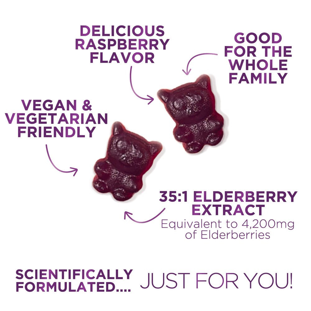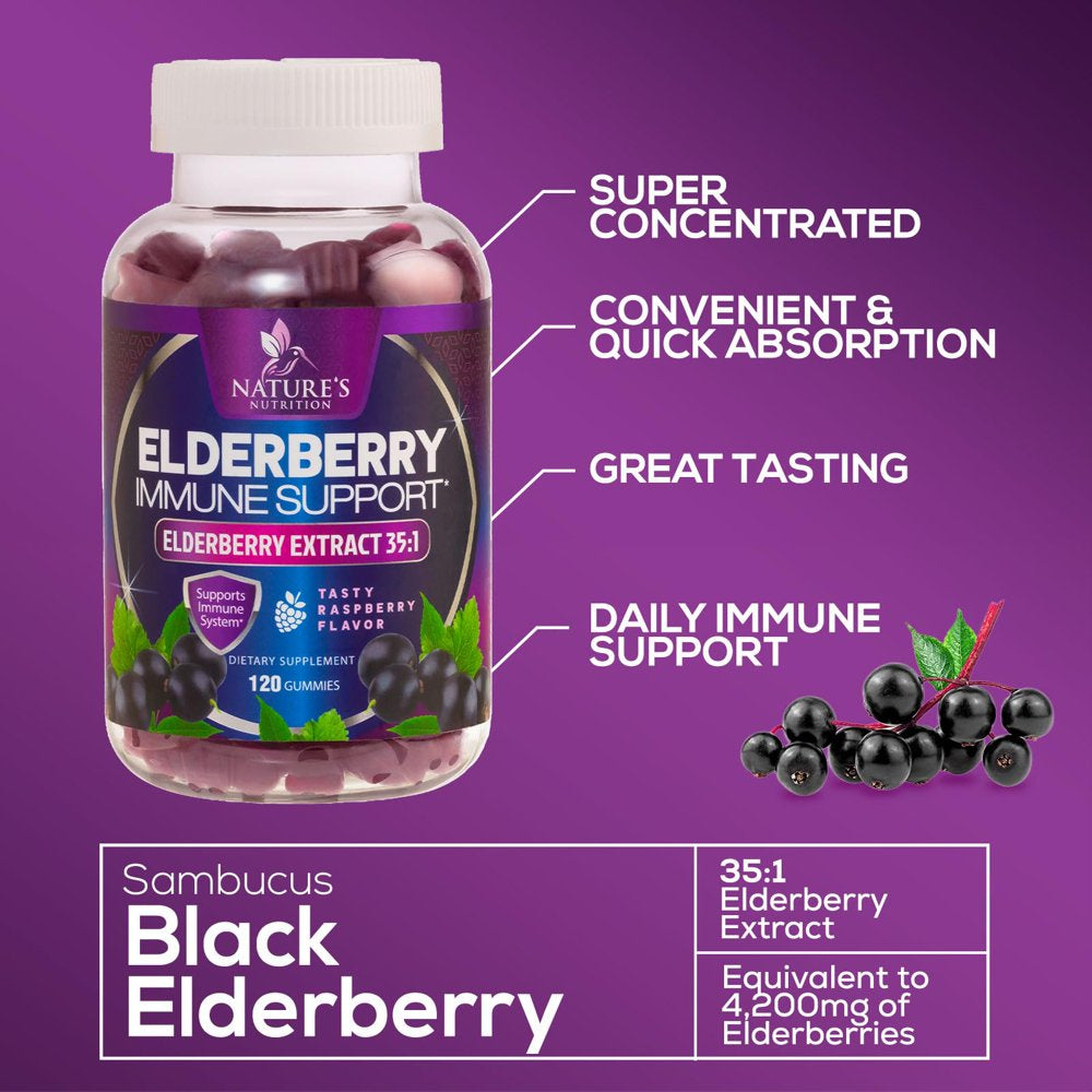 • Elderberry Immune Support Gummies for Adults & Kids: black berry booster gummy capsules count defense drops edelberry elberry eldeberry elder elderberries elderbery eldreberry extract liquid nature natures nutrition pills sambucus supplement supplements syrup system throat toddler vitamin c d 120 60 vitamins zinc