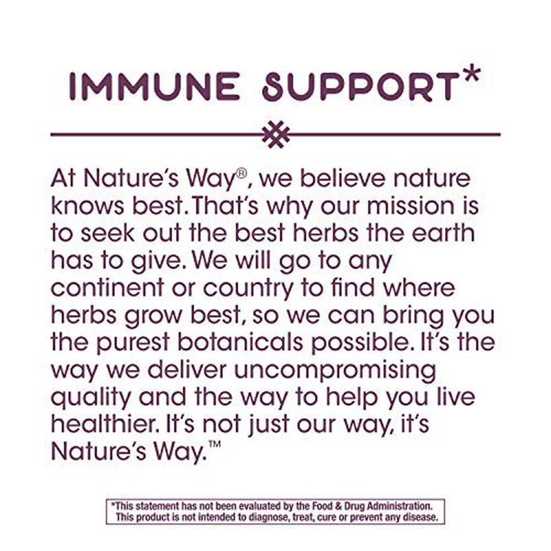 • Provides immune support* • Botanicals are sourced where they grow best • Made with the quality you trust from Nature's Way • Bottle made with 97% post-consumer recycled materials. Please recycle • Gluten-free and vegan. No salt, yeast-derived ingredients, wheat, corn, dairy or artificial colors flavors or preservatives