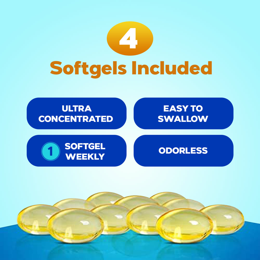 - Easy to Swallow - Taking just one, small, easy to swallow Ultra-D3 softgel per week is an easy and convenient way to ensure proper Vitamin D levels. Available in a 4 or 12 count pack.