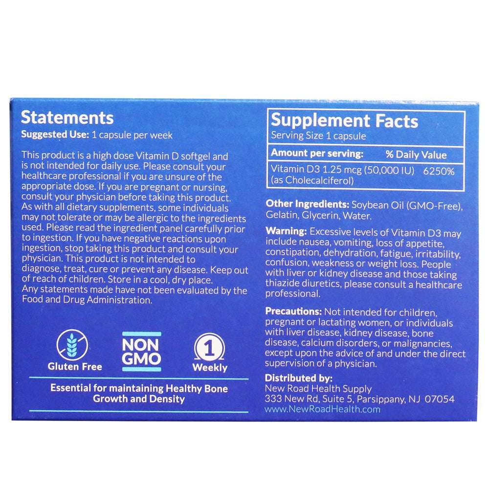 New Road Health Supply - Ultra- D3, Vitamin D 50000 IU Weekly Vitamin D Softgel for Bones, Teeth, and Immune Support, Gluten Free, 4 Count