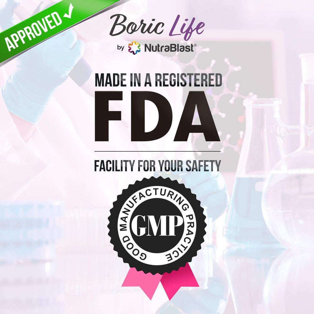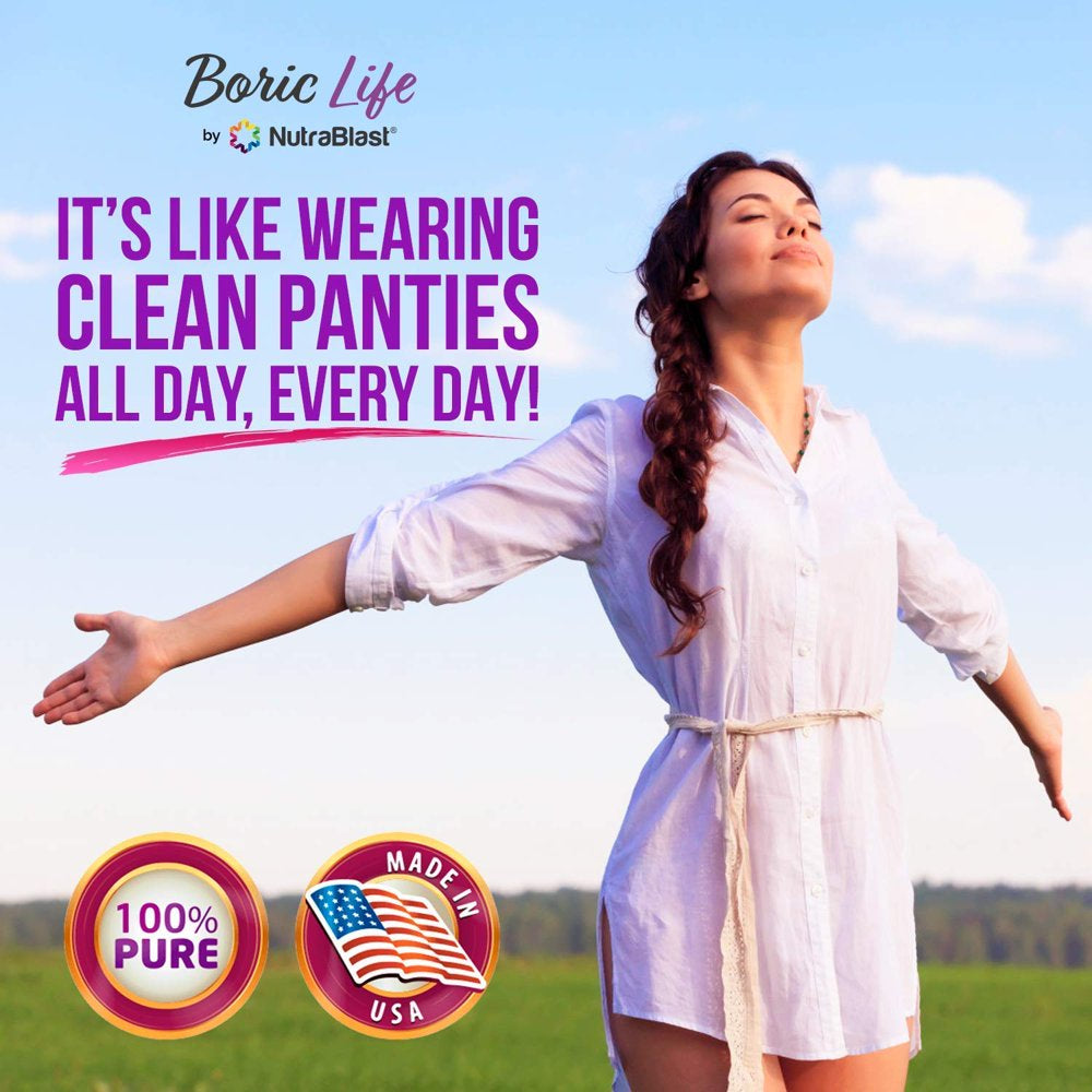 Presenting the NutraBlast Boric Acid Intimate Health Suppositories!SAFE & EFFECTIVE NATURAL SUPPORT FOR VAGINAL CONDITIONS! – Are you sick and tired of struggling with acidic vaginal fluid, dryness, odors, itching, burning, unbalanced discharge, chronic vaginal conditions, vaginitis, bacterial vaginosis, bv, Gardnerella vaginalis, or any other vaginal health condition? Don't leave these issues untreated and restore your normal vaginal pH balance levels - it's time you take care of your wellbeing, once and for all!Each suppository contains 600mg of pure boric acid - the recommended dosage. Carefully formulated in collaboration with qualified gynecologists, our healthy and hypoallergenic boric acid suppositories are designed to support the balance and cleansing of your vaginal system's pH and help relieve your pain and discomfort!Feel Refreshed, Relieved & Rejuvenated with our Premium Boric Acid Suppositories! All Natural Personal Defense! Feel Clean Again!The NutraBlast boric acid suppositories provide support and soothing relief from various vaginal conditions, and help you get on with your day without the slightest irritation! Ideal for support against BV, our healthy and hypoallergenic boric acid capsules may promote a balanced vaginal pH level. Your Wellbeing is our Top Priority!We know you are a busy woman and that your time is valuable. That's why we have provided you with a quick and easy solution to vaginal conditions!Comfort in 3 Simple Steps:Simply use 1 NutraBlast Boric acid suppository per day before bedtime for 7 consecutive days. The suppository's powerful soothing formula starts working within a single day! You can insert using a suppository applicator or with your fingers. If the symptoms persist, repeat for another week. For recurring maintenance, it can be used once a week.Our bottle contains 30 high-quality suppositories, so you're covered for weeks!Our Products and Supplements are Manufactured in a FDA Registered and Inspected Facility with a GMP Certification with all Safety Standards.
