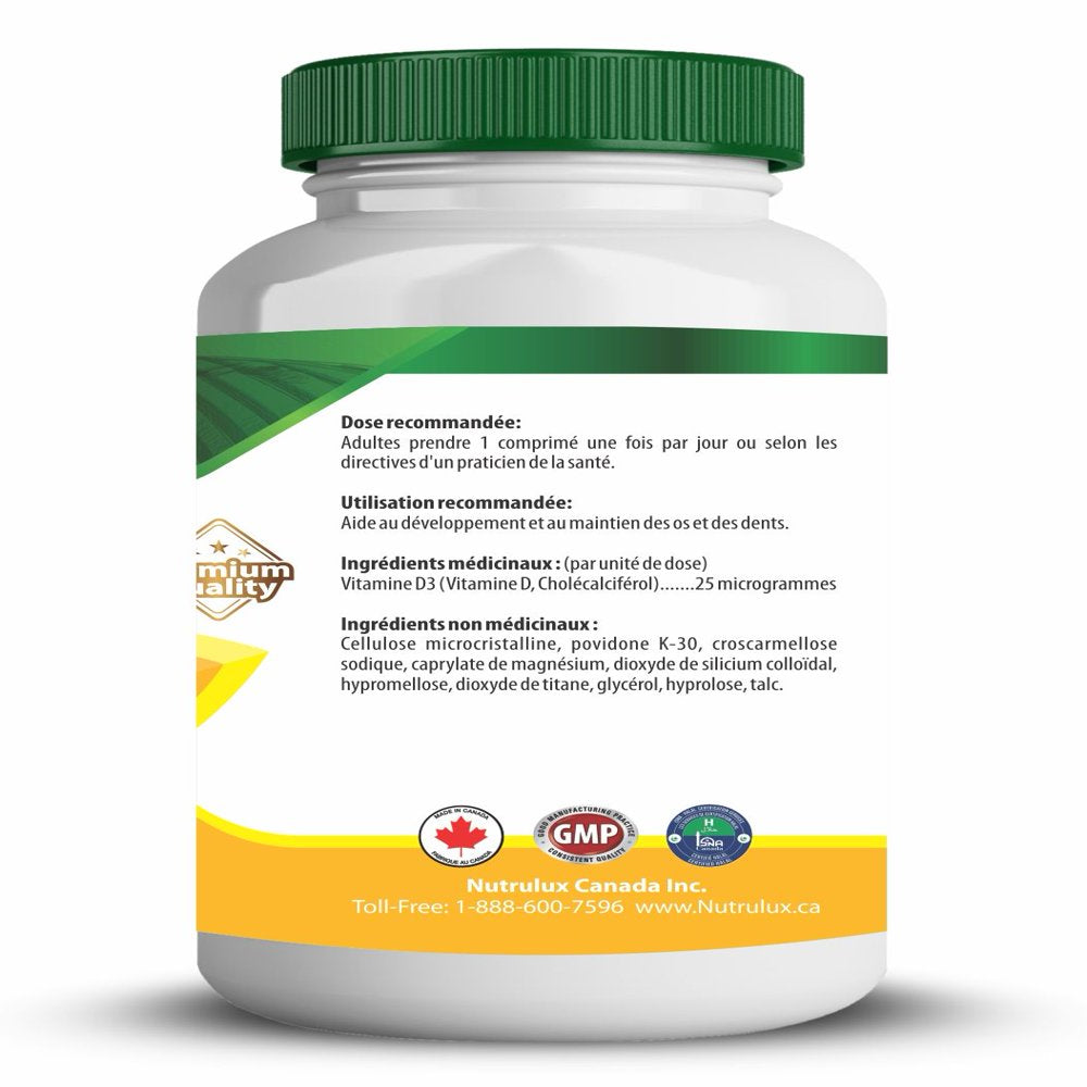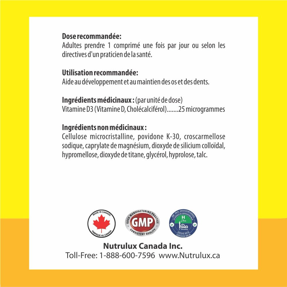 Nutrulux Vitamin D3 (25 Mg) Halal Vegan Gelatin-Free Tablets - Bone Health Support Supplement - Immune Boosting - Daily Intake - Halal Certified - Gelatin-Free Pills 120 Tablets (Pack of 2)