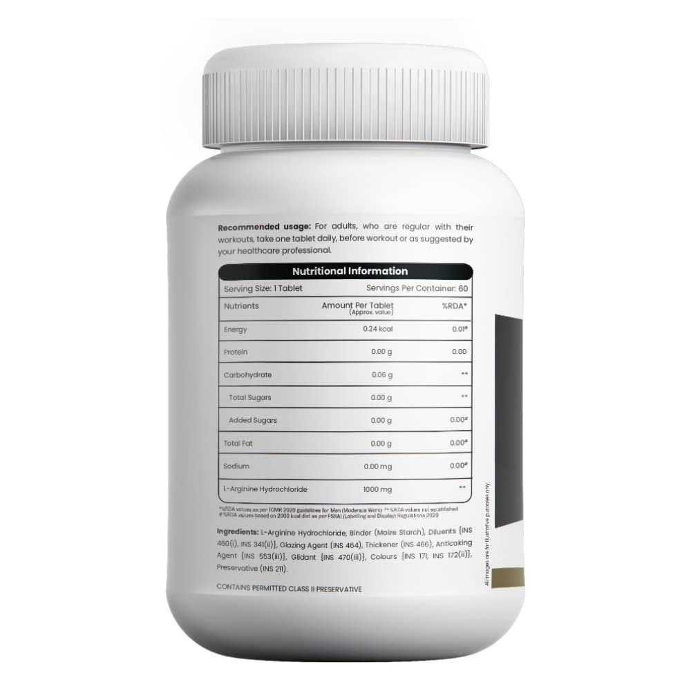 Onelife L-Arginine 1000Mg Nitric Oxide Booster Supplement For Muscle Growth, Stamina, Recovery, Immune Booster And Energy - (Pack Of 1)Tablets 60 Count