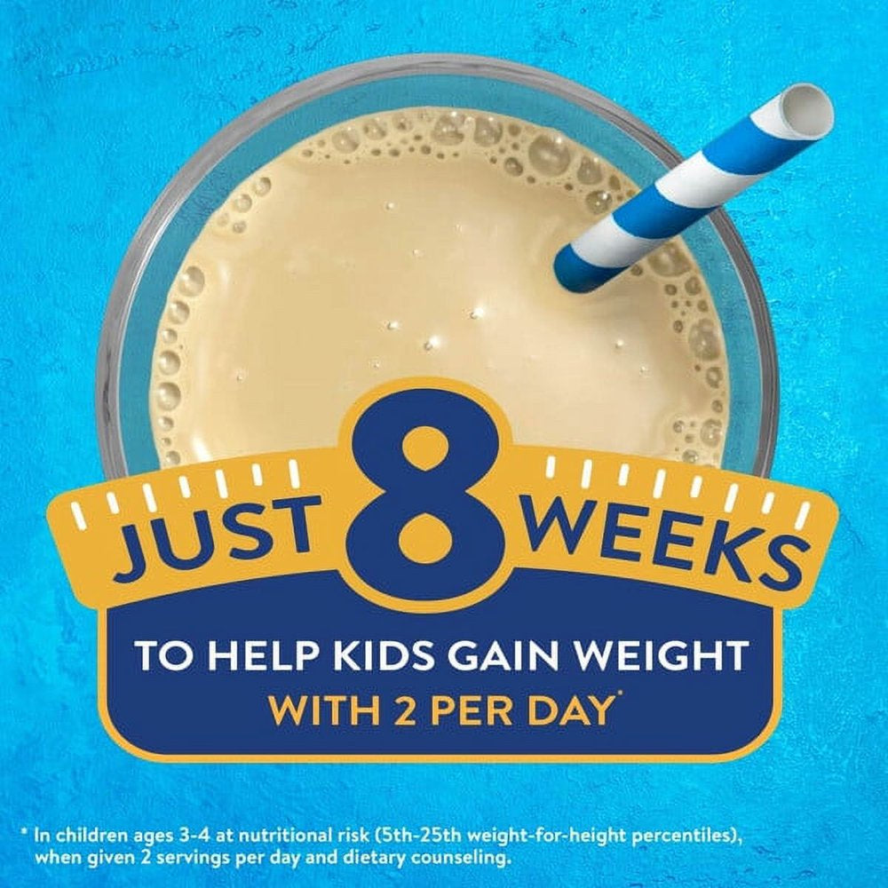 PediaSure nutrition shakes for kids are clinically proven to help kids grow. Each shake has 7g of protein to help build muscles, 32mg of DHA omega-3 for brain & eye development, antioxidants (vitamins C & E and selenium) for immune support, and 27 essential vitamins & minerals. Available in 6 great flavors: Vanilla, Chocolate, Strawberry, Banana, Berry, and S’mores. PediaSure Grow & Gain is gluten-free, kosher, halal, and suitable for lactose intolerance. Use as a snack or add to your favorite healthy recipes for your kids. Studied in children at risk for malnutrition. In children ages 3-4 at nutritional risk (5th-25th weight-for-height percentiles), when given 2 servings per day and dietary counseling. Vitamins C & E and selenium. No significant difference has been shown between milk derived from rbST-treated and non-rbST-treated cows. Not for children with select stores, The SNAP (Supplemental Nutrition Assurance Program) name is a service mark of the U.S. Department of Agriculture. USDA does not endorse any goods, services, or enterprises.