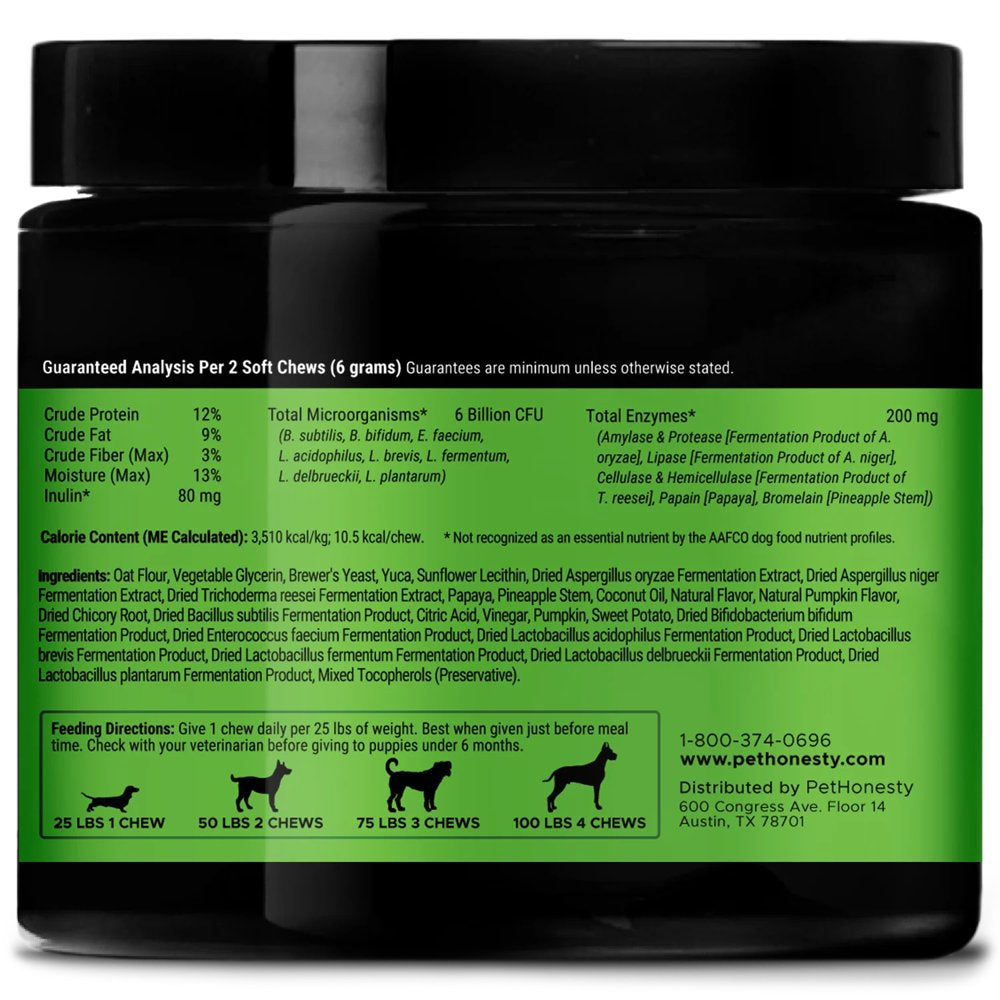 Pet Honesty Dog, Gut and Immune Health Support Probiotic Supplement W Prebiotics Fiber and Enzymes, Pumpkin Flavor, 90 Count Soft Chews