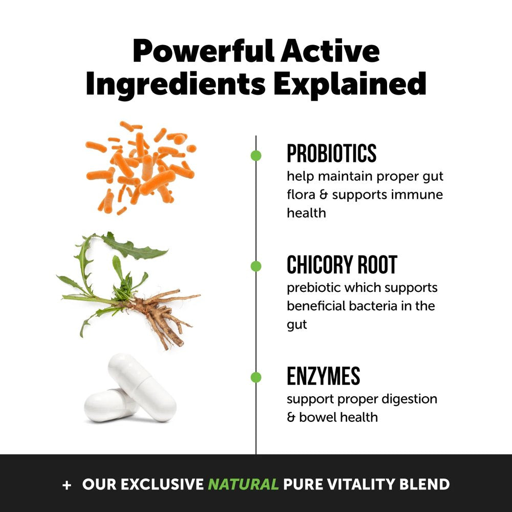 - BUILT ON OUR EXCLUSIVE NATURAL PURE VITALITY BLENDTM: Probiotics Gut + Immune Health is formulated with our Pure Vitality BlendTM, made with natural ingredients you can find in your own pantry. We combine this nutritious blend with powerful, research-backed active ingredients to support your dog where they need it most. These easy-to-give chews promote a strong immune system, a healthy digestion, & help maintain proper gut flora. Plus, your dog will absolutely love the delicious pumpkin flavor!