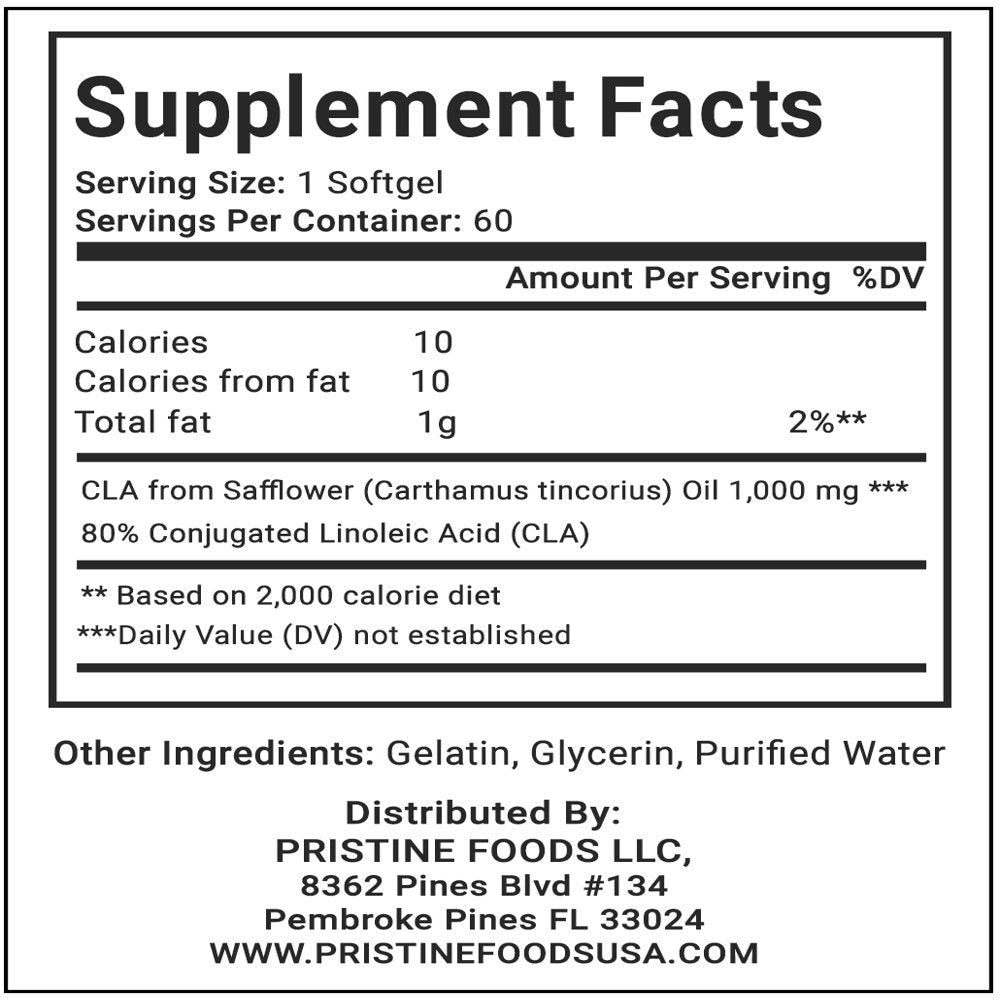Premium CLA Supplement for Fat Burning, Muscle Building, and Immune Support - High-Quality Formula for Enhanced Health and Fitness Goals, 60 Softgels by Pristine Foods