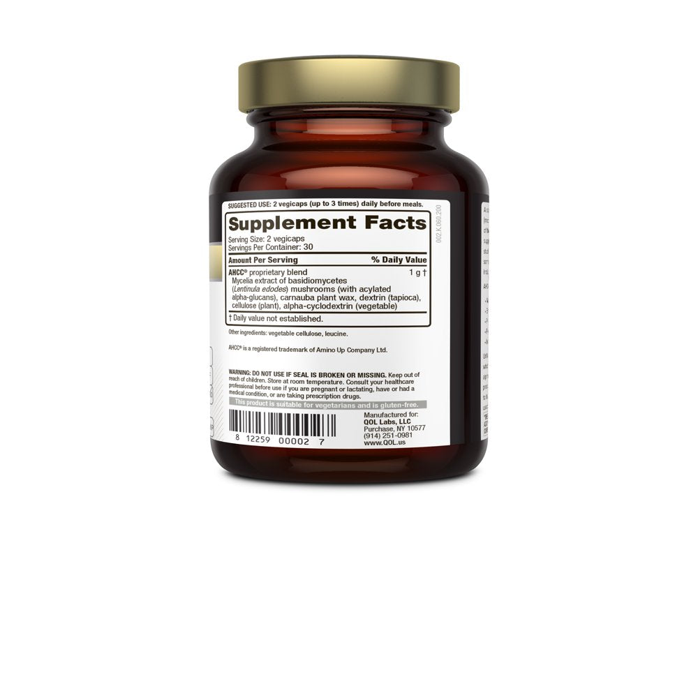 CLINICALLY PROVEN IN OVER 20 HUMAN CLINICAL TRIALS: Our AHCC mushroom extract is comprised of several species of medicinal mushrooms including Shiitake and Mycelia. AHCC is unique in that while most mushrooms contain primarily Beta Glucans, AHCC is rich in Alpha-Glucans, a type of polysaccharide with very potent immune enhancing effects. MADE IN USA & 100% SATISFACTION GUARANTEE: Our AHCC supplement is manufactured in the USA in an FDA registered facility that adheres to Good Manufacturing Practices (GMP). We offer a no questions asked money back guarantee because we know our AHCC mushroom extract will work for you. SUPERIOR AHCC QUALITY: Quality of Life’s AHCC is the most potent mushroom extract available. Our AHCC has been researched by Yale, Harvard and used by thousands of people worldwide. Unlike other AHCC Supplements, AHCC powder, mushroom supplements, mushroom extracts and active hexose correlated compounds, Quality of Life’s AHCC’s complex is clinically studied. SUPPORTS IMMUNE HEALTH, LONGEVITY & NK CELL ACTIVITY: Kinoko Gold AHCC capsules have shown to support immune health, enhance cytokine production, promote macrophage activity, T-cell and NK cell activity and longevity. Our Kinoko AHCC capsules are easy to swallow, convenient and tasteless. Each AHCC 500mg capsules gives you powerful long lasting immune support. THE WORLD’S LEADING IMMUNE HEALTH SUPPLEMENT: Quality of Life’s AHCC (Active Hexose Correlated Compound) supplement is a proprietary blend of mushrooms designed to significantly improve immune response, maintain optimal T-cell and natural killer cell activity and is used by over 1,000 clinics worldwide.