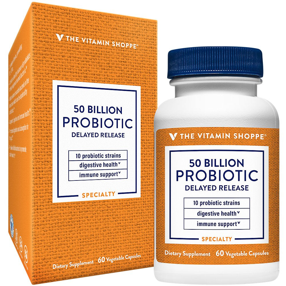 Probiotic Delayed Release 50 Billion - with 10 Probiotic Strains to Support Digestive, Immune & Vaginal Health or Yeast Imbalance - Shelf Stable (60 Veggie Caps) by the Vitamin Shoppe