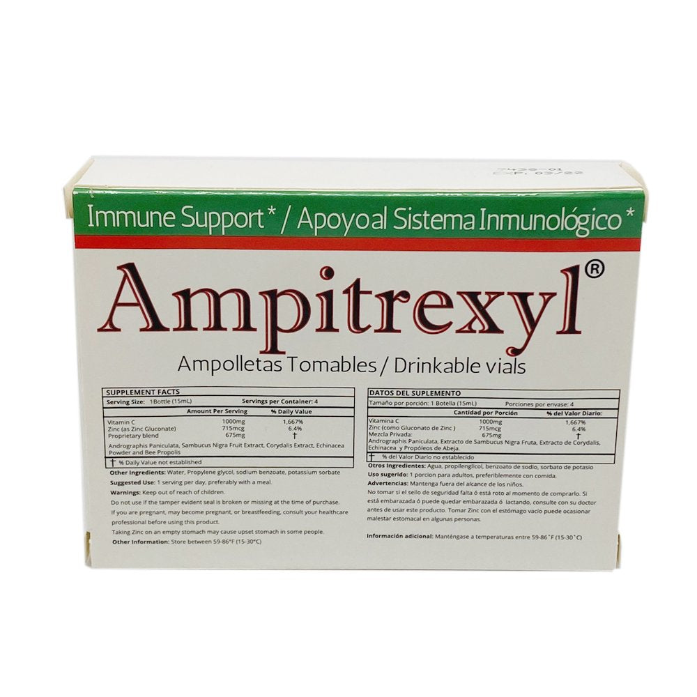 Promex Ampitrexyl Drinkable Vials. All-Natural Herb Based Dietary Supplement. Improves Immune System Response and Promotes Healing. 4 Vials. Pack of 3 is backordered and will ship as soon as it is back in stock.